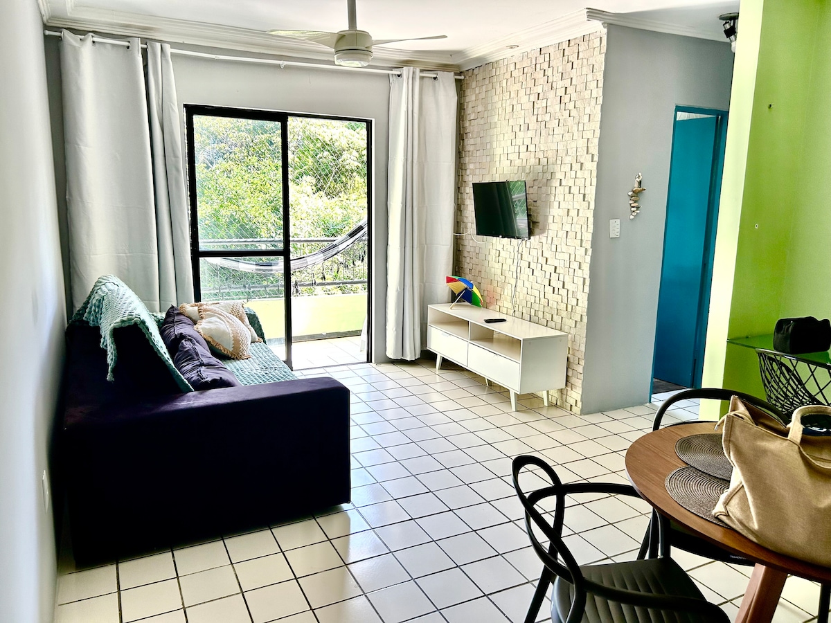 Aconchegante e funcional com ótima localização. 🌿 O que você encontra: • Quarto com cama de casal, ar-condicionado e guarda roupa • Sala com sofá-cama, TV e Wi-Fi • Vista para o mar • Cozinha com utensílios básicos, máquina lava e seca, liquidificador, microondas, geladeira, fogão • Chuveiro quente •Elevador •Portaria 24h • Piscina • Estacionamento • Restaurante e minimercado 📍Localização: à 50 metros da praia, cercado por supermercados, padarias, farmácias, restaurantes e cafés.