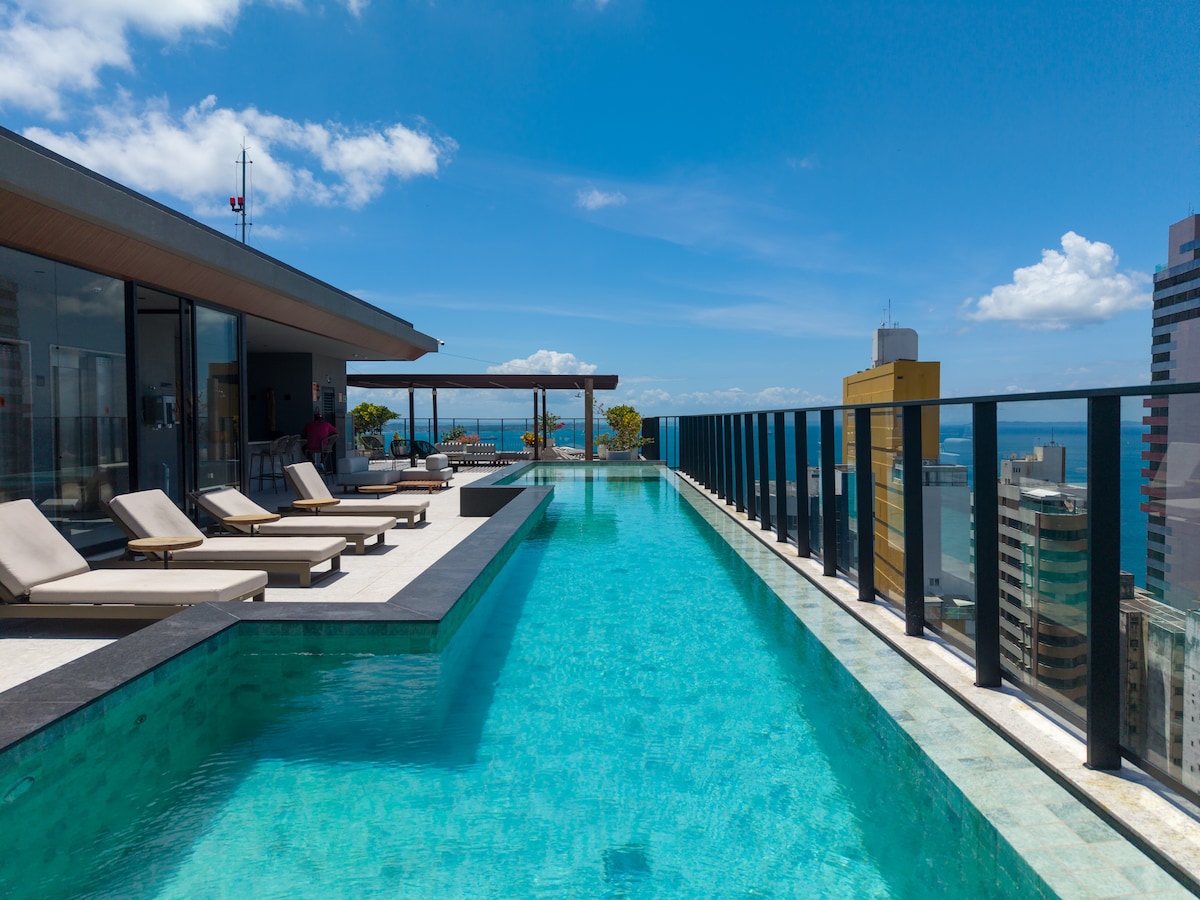 O bairro de Santo Antônio é uma ótima escolha para turistas interessados em arquitetura, igrejas e história. O Loft Santo Antônio oferece duas suítes exclusivas, com bela decoração, piscina em borda infinita e vista panorâmica para Bahia de Todos os Santos. Santo Antônio Além do Carmo, está a 15 minutos à pé do famoso Pelourinho e outros pontos turísticos do centro de Salvador.
