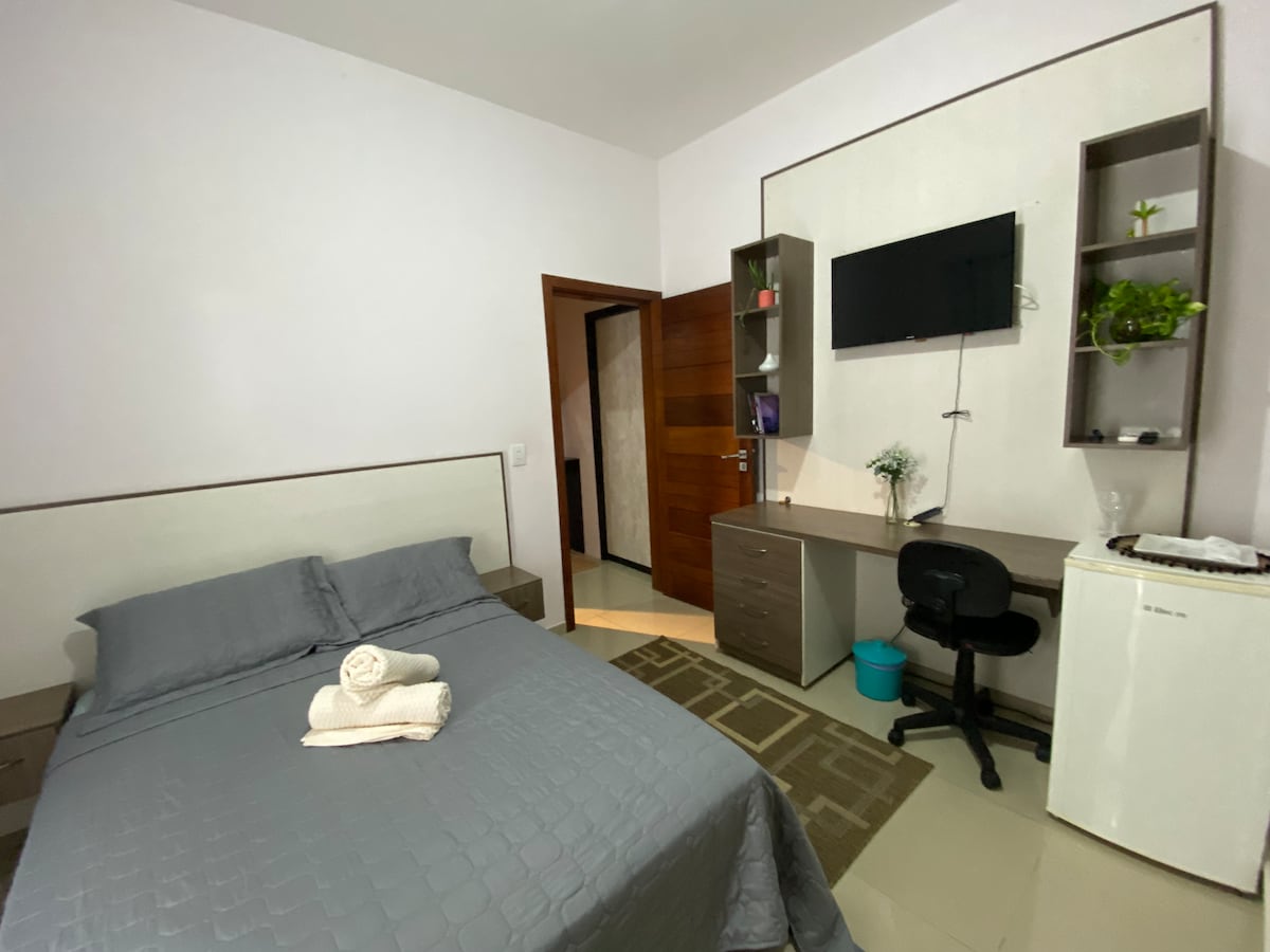 Nosso espaço fica em localização bem central, próximo ao teatro municipal, locais de café da manhã, restaurantes, posto de gasolina, pontos de venda de açaí. Aconchegante, nosso quarto está equipado para as necessidades básicas em uma casa. (Geladeira, fogão elétrico, utensílios de cozinha). Possui uma cama de casal e uma cama auxiliar, podendo receber até 3 pessoas! Dica: agende antecipadamente sua visita ao Mirante de Boa Vista no site da prefeitura.