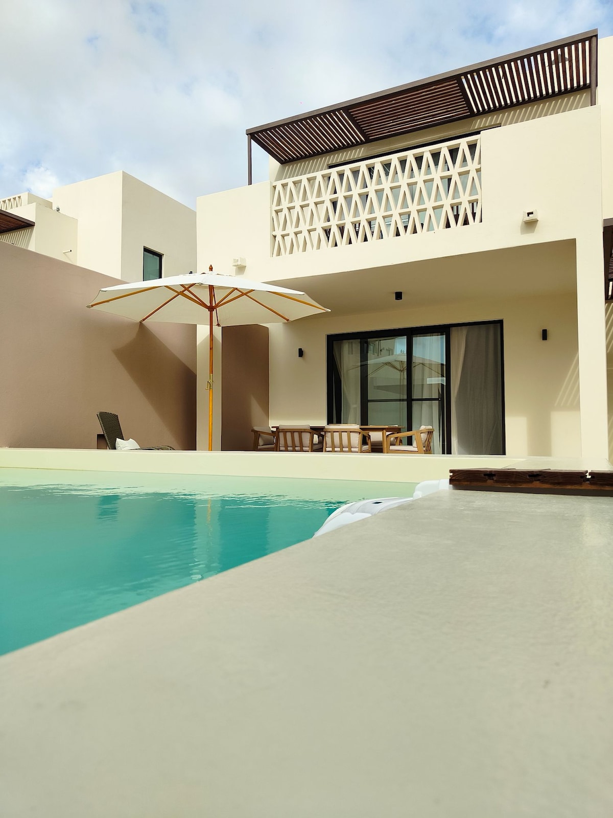 Our new Lagoon Apartment with its own private pool offers plenty of space and comfort. The private pool measures 5 x 2 meters and is 1.70 meters deep, perfect for a refreshing dip. The adjoining terrace features a large dining table that seats 4 people, as well as two sun loungers for relaxing.