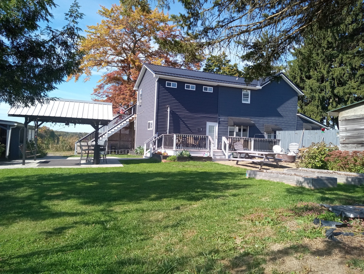 Late Checkins are fine.This quaint Cabin style Apt is perfect for a quick stopover or longer stays.Having all the amenities you need at hand. This is a 575sq ft self contained apt .We are the perfect stop over being a half Way between Chicago and New York. 5 mins away from In I80 E or W ext 229 or route 711 ext 228a off Belmont ave ,5 min to St Elizabeth.Y.S.U, Covelli , Amphitheater 10 mins to Westside Bowl, fishing spots 5 mins away from Penguin city Brewery and past times arcade.