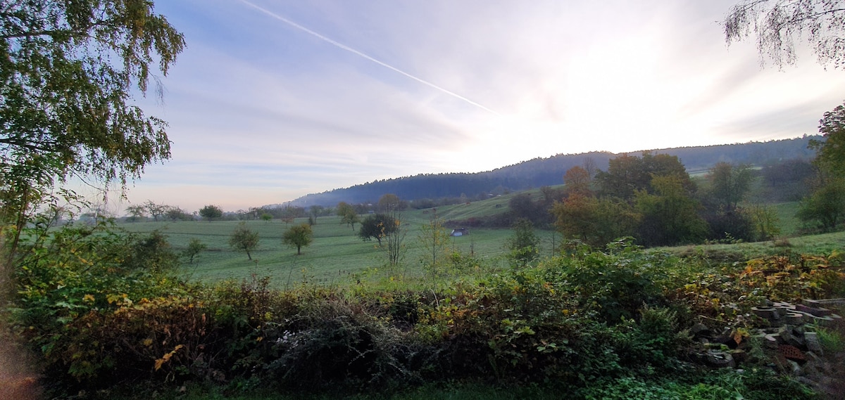 Modernes 1 Zimmer Apartment mit Terrasse in ruhiger/sonniger Lage mit herrlicher Aussicht ! Kleinere 🐶 Hunde sind bei uns willkommen..! Voll ausgestattetes Apartment und einem separatem Badezimmer mit einem französischem Bett 1,40 m für 2 Personen ! Das Haus befindet sich in einer einzigartigen Lage angrenzend zu unserem wunderschönen Schwarzwald !