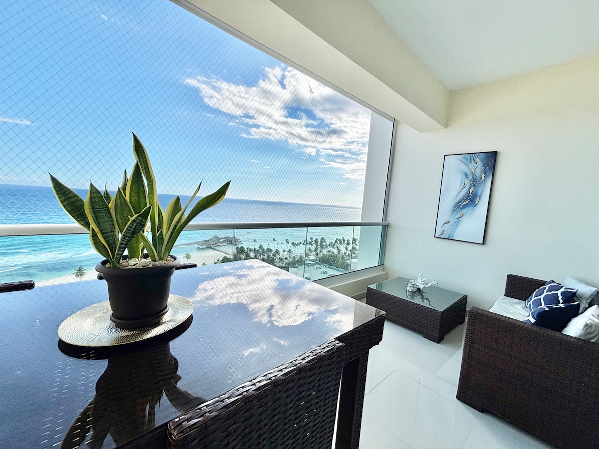 Wake up to breathtaking Caribbean sea views in this modern penthouse suite located inside Hotel Neptuno Refugio, just steps from Boca Chica’s famous turquoise waters. Designed for comfort and style, the penthouse features: 🌅 Private oceanview balcony perfect for sunsets and morning coffee 🛏️ Spacious king-size bed and cozy lounge area ❄️ Air conditioning, fast Wi-Fi & Smart TV with Netflix 🍸 Mini bar and kitchenette with essentials 🧖‍♂️ Access to the hotel’s pool, bar & beach area