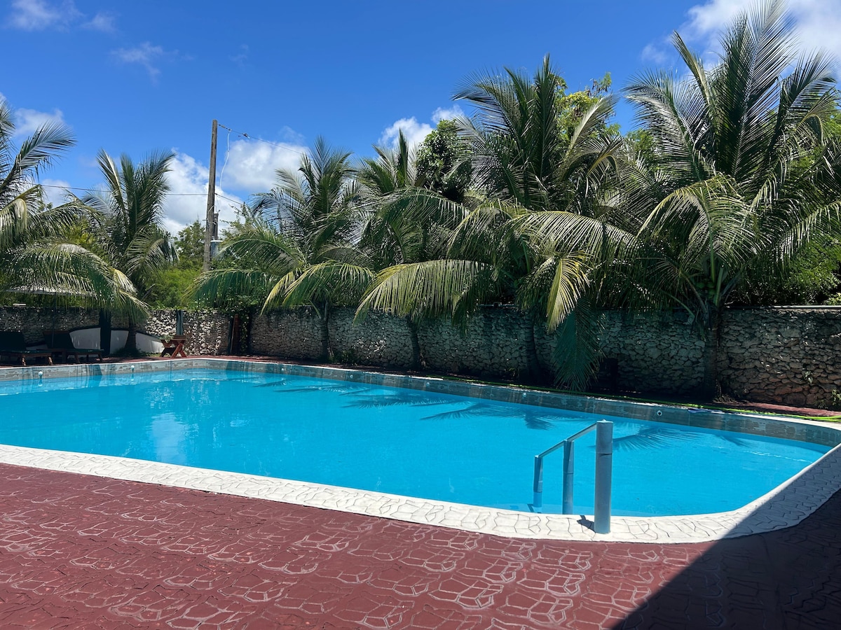 Habitación acogedora y tranquila ubicada en nuestro aparta-hotel frente a la playa de Juan Dolio, diseñada para un descanso relajante. Cuenta con aire acondicionado y WiFi, ofreciendo un ambiente cómodo y funcional. Ideal para familias, parejas o grupos de amigos que buscan privacidad, confort y una ubicación privilegiada frente al mar, con fácil acceso a la playa y espacios pensados para disfrutar una estadía agradable y sin complicaciones.