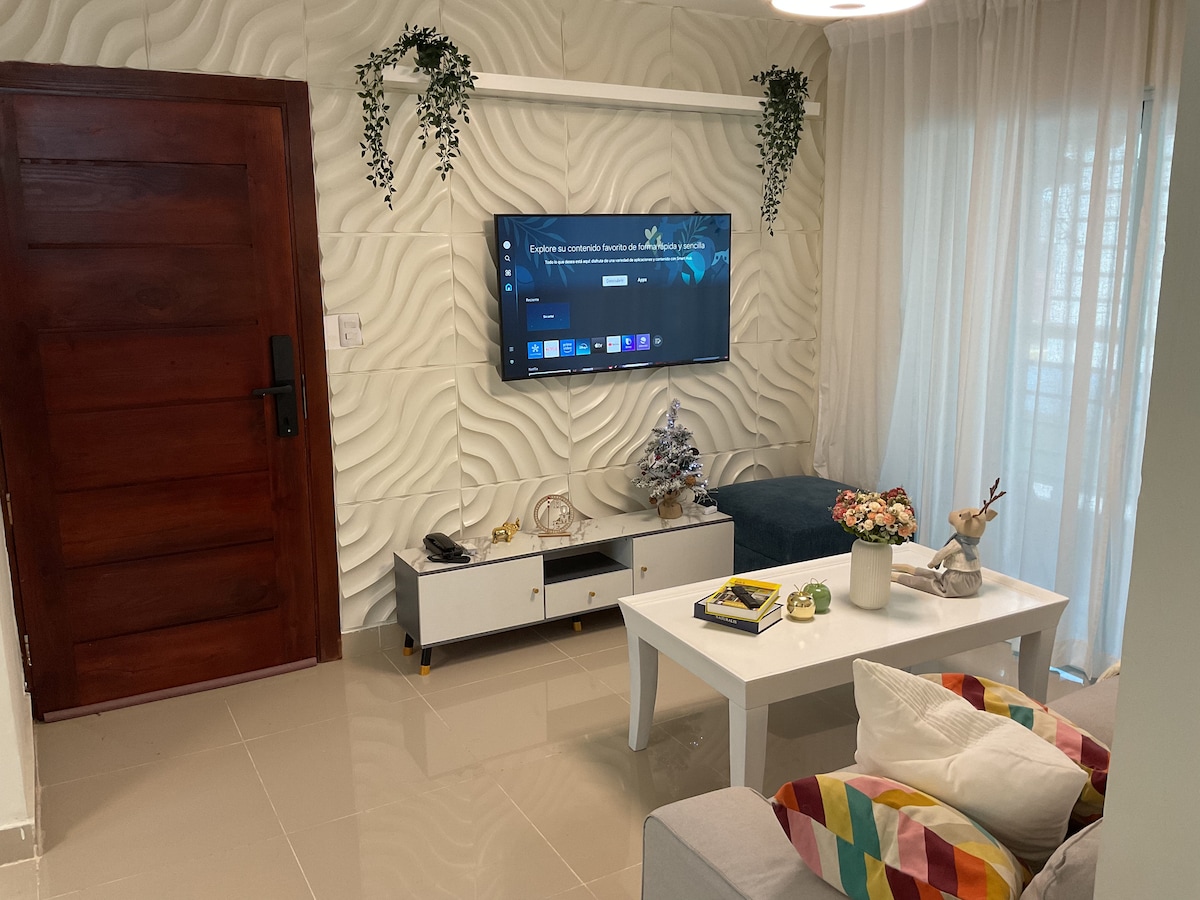 Modern apartment in a luxury high-rise on the 14th floor, centrally located in Santo Domingo. Features 1 bedroom, bathroom, living room, full kitchen, laundry area, balcony, and 2 covered parking spaces. Sleeps up to 4. Building amenities: pool, gym, social terrace, kids’ area, jogging track, BBQ, sauna, and spa. 24/7 security. Perfect for families or business trips.