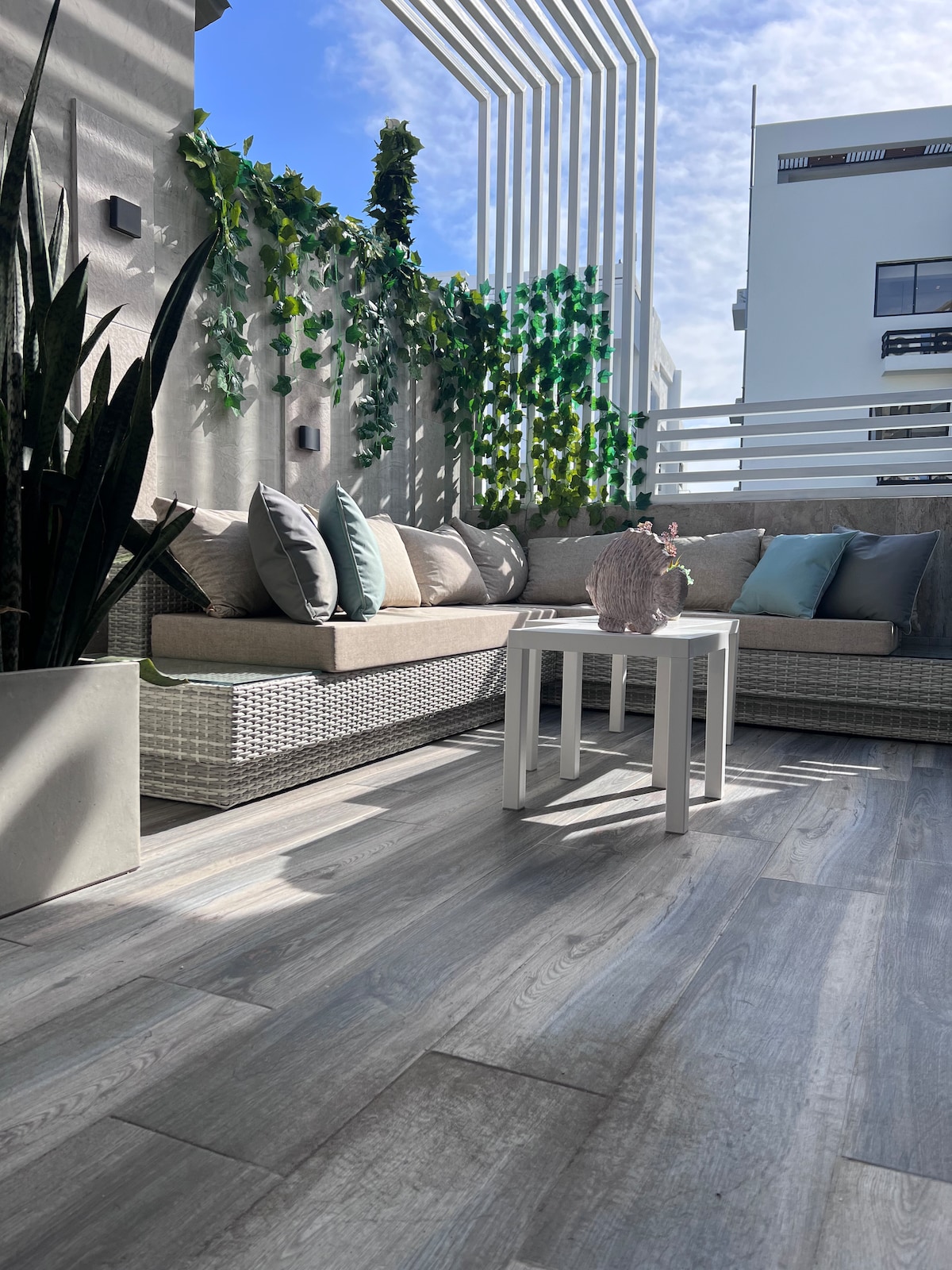 "Descubre la serenidad y el estilo en este alojamiento contemporáneo, ofreciendo un entorno tranquilo y acogedor ideal para relajarse. La sala está equipada con un sofá cómodo y una decoración moderna. Los baño dentro y fuera son un refugio de lujo, con azulejos oscuros y una ducha amplia. Disfruta de la luz natural y las vistas a un tranquilo patio interior, perfecto para un café matutino o una tarde de lectura. Ven y vive una experiencia única en un hogar diseñado con cariño y estilo."