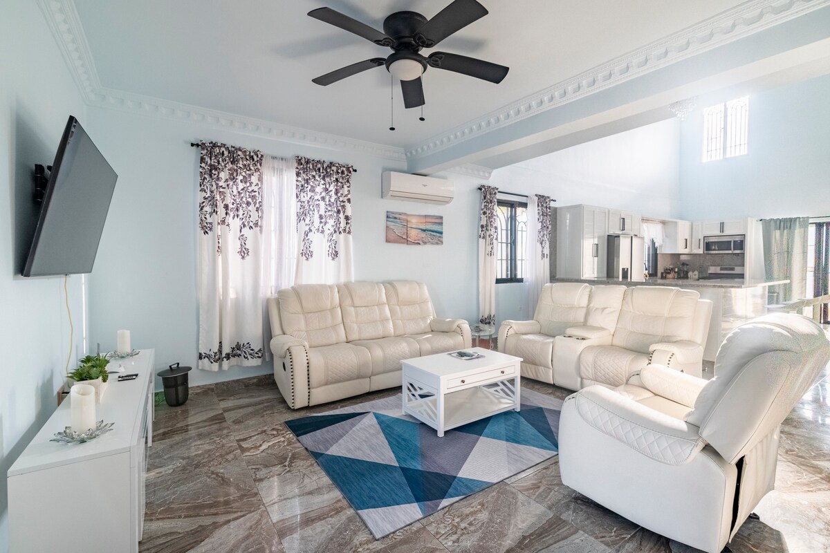 Ubicada en la zona más exclusiva y tranquila de Boca Chica, nuestra villa está a solo un minuto a pie de los mejores restaurantes, bares y la playa. Disfruta de delicias en Boca Marina y Neptunos, y accede al aeropuerto en 10 minutos en auto. El espacio es meticulosamente limpio y totalmente equipado para estancias cortas o largas. Relájate en un complejo cerrado y seguro. Perfecta para familias, ofrecemos televisión inteligente, libros y juegos de mesa. ¡Tu refugio ideal te espera!