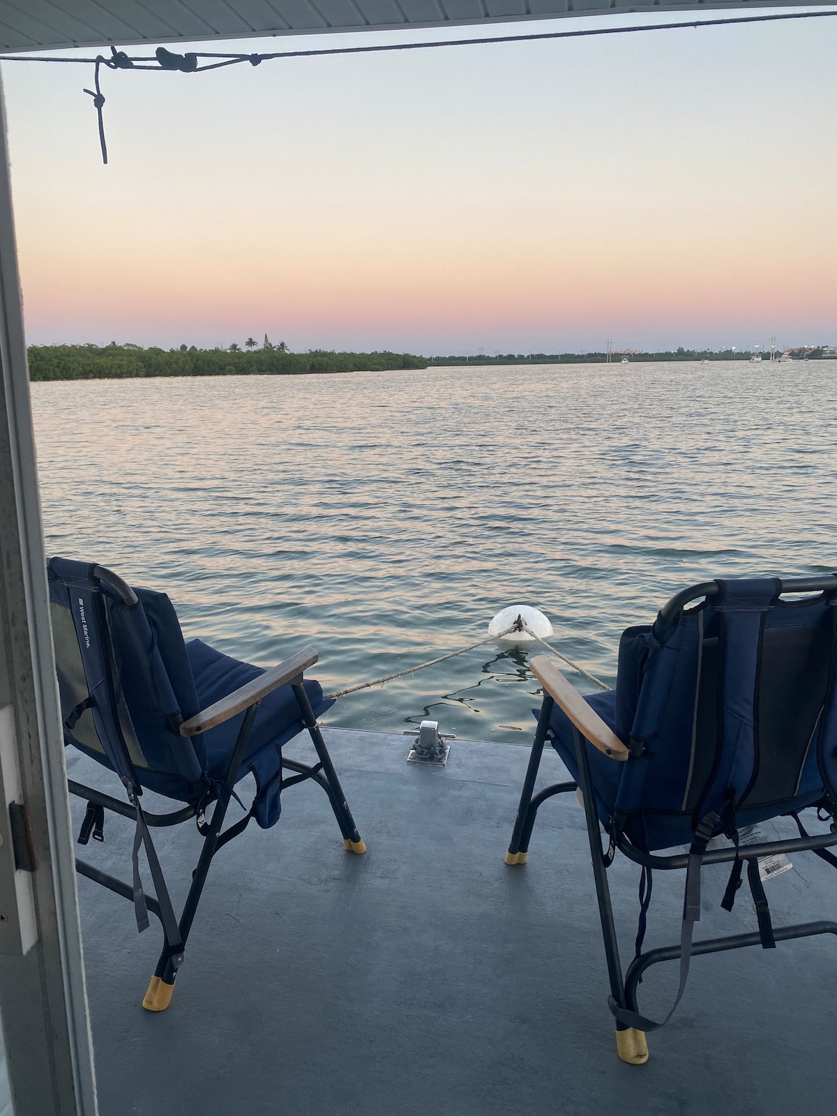 Read our reviews and relax with last minute weather cancellation! 🌞 Shower, toilet and power to recharge phones, full cellular. Enjoy a peaceful night or two on the water! Free parking and one free round trip transport to/from Roxie per night stay! Roxie is anchored in ~3ft lagoon. We live on a boat a half-mile away if you need anything at all! Roxie has a Keurig, coffee pods, bread, peanut butter-jelly, and bottled waters. No cooking but you may bring to-go food, beer/booze/wine. 🛥️🌴🎣