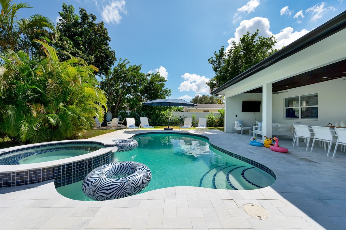 设计师住宅,带加热泳池,距离海滩3英里
