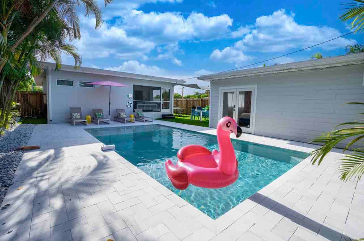 Welcome to our exquisite Fort Lauderdale retreat! This luxurious Airbnb offers an unforgettable vacation experience, combining elegance, comfort, and the ultimate in relaxation. Nestled in the vibrant city of Fort Lauderdale, our property boasts a heated pool, a charming pergola, outdoor fireplace, mini golf, game of cornhole, and so much more. Destinations: Fort Lauderdale Airport 14min Las Olas Blvd 6min Fort Lauderdale Beach 6min Hard Rock Casino 12min Sawgrass Mall 19 min