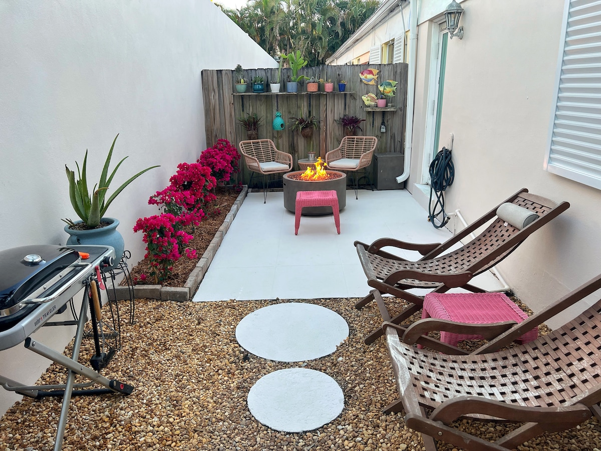 Welcome to the "Royal Poinciana" in Lake Worth Beach's Historic District! Our beautiful, fully-remodeled 1920's cottage is 100 yards from the Intracoastal Waterway, a mile from Lake Worth Beach, and only a few blocks to downtown. You'll have a fully stocked kitchen with top of the line appliances, a large private yard with outdoor shower and fire pit, laundry in-unit, WiFi, and Roku TV. Includes 2 beach cruiser bikes, beach chairs, towels, and umbrella. Fall in love with our breathtaking oasis!