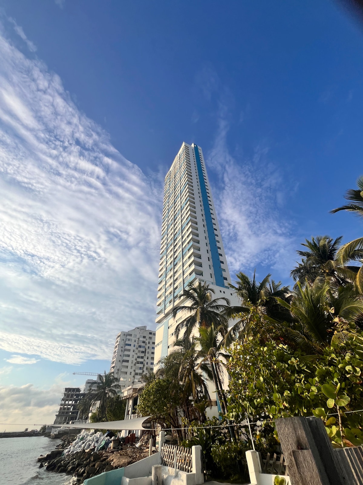 Welcome to a Stylish Corner Apartment with stunning open sea views. Breathtaking sunsets. Come enjoy a home away from home. Pleasant and relaxing vibes. Full Size Kitchen. Just 50 yards distance from the building entrance to the beach. Amazing location with everything at your fingertips in this 24 hour doorman building. Groceries, convenience stores, wine stores, pharmacies, restaurants, and much more. Easy 5-10 minute commute into the old colonial city.