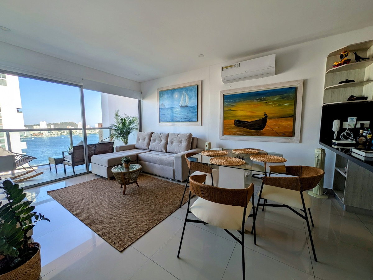 Hermoso apartamento ubicado en la zona turística de Cartagena, un excelente lugar para tener las mejores vacaciones en familia y amigos. Podrás disfrutar de la playa y la increible vista frente al mar desde el balcón. Cuenta con todo lo necesario para una estancia inolvidable. A tan solo 5 min del centro historico de la ciudad, con muchas opciones de transporte. Desde que veas la hermosa vista al mar, quedarás muy feliz. Tendrás la mejor de las experiencias!!