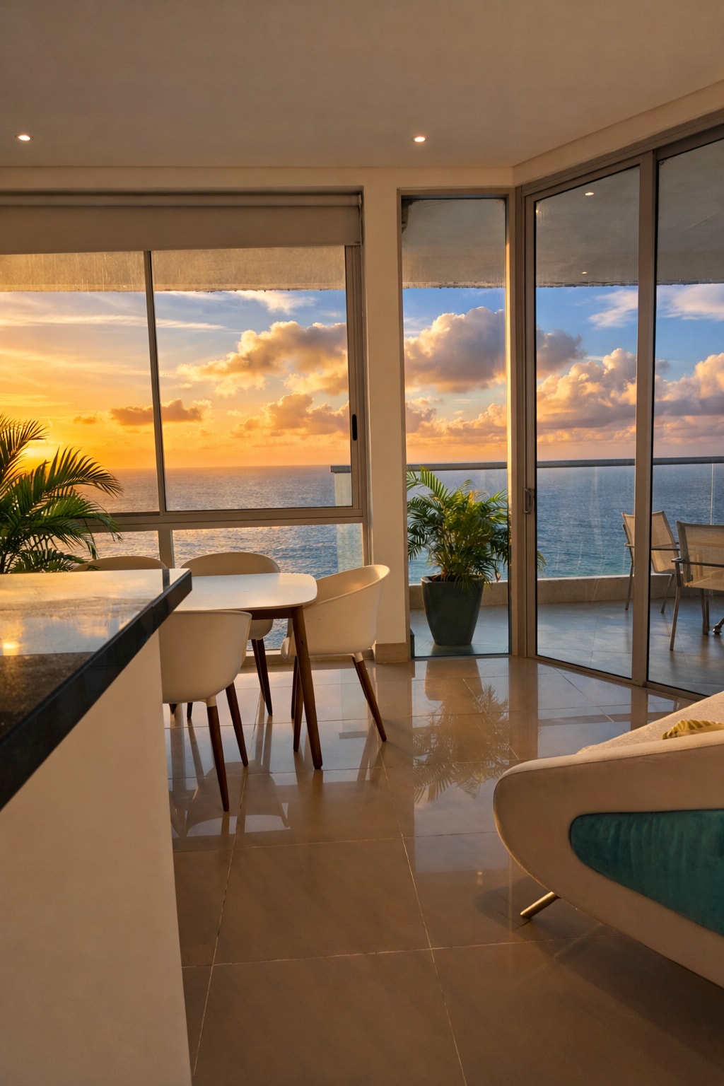 New Listing! This stunning residence, located on the 37th floor of Murano Elite in Bocagrande, offers sweeping ocean and city views from a private balcony. Start your day with a delicious breakfast above the city and unwind in the evening with dramatic walled city views. Daily professional house cleaning, modern furnishings, and full building amenities including a rooftop pool, additional pools, a hot tub, and a fully equipped gym create a fun and relaxing experience throughout your stay.