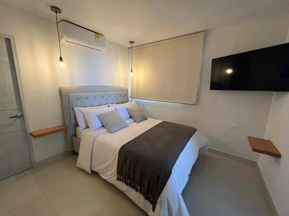 Just 5 minutes from the Walled City and accompanied by the soothing sounds of the Caribbean Sea. Enjoy a spectacular view from this modern apartment in Marbella. ✔ 3 air-conditioned bedrooms ✔ Infinity pool, jacuzzi, and gym ✔ Direct beach access ✔ Private balcony with panoramic views ✔ Only 5 minutes from the airport. Ideal for families, couples, business travelers, and groups of friends seeking comfort and a good location in Cartagena.