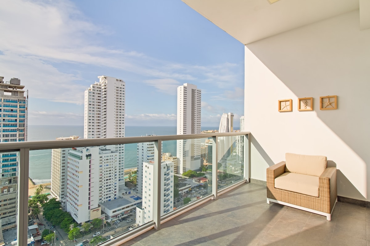 Confortable and luxurious apartment in a 33rd floor, with a stunning view of Cartagena's bay. Nearby restaurants, malls, supermarkets, a couple of blocks away from the beach and only 5 min away from Cartagena's historical center (by car). Equipped with brand new furniture and appliances, so that you feel at home. The building has a swimming pool, jacuzzi, gym, sauna, 4 elevators, parking and ping pong tables