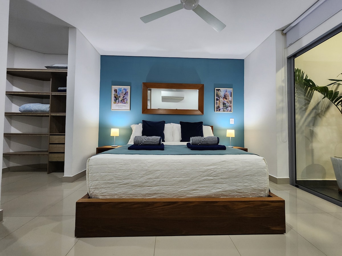 This unique place has a style all its own. If you’re looking for an unique Cartagena experience this is the place to stay. This condo is located in Marbella, upcoming and very central area, near the old city and just a short walk to the beach. Here you will be able to enjoy stunning views of the ocean and the coast line. There is two master bedrooms with en-suite bath, both with king size beds. Open kitchen, living room, dining room area. The apartment is a high floor duplex, two level condo.