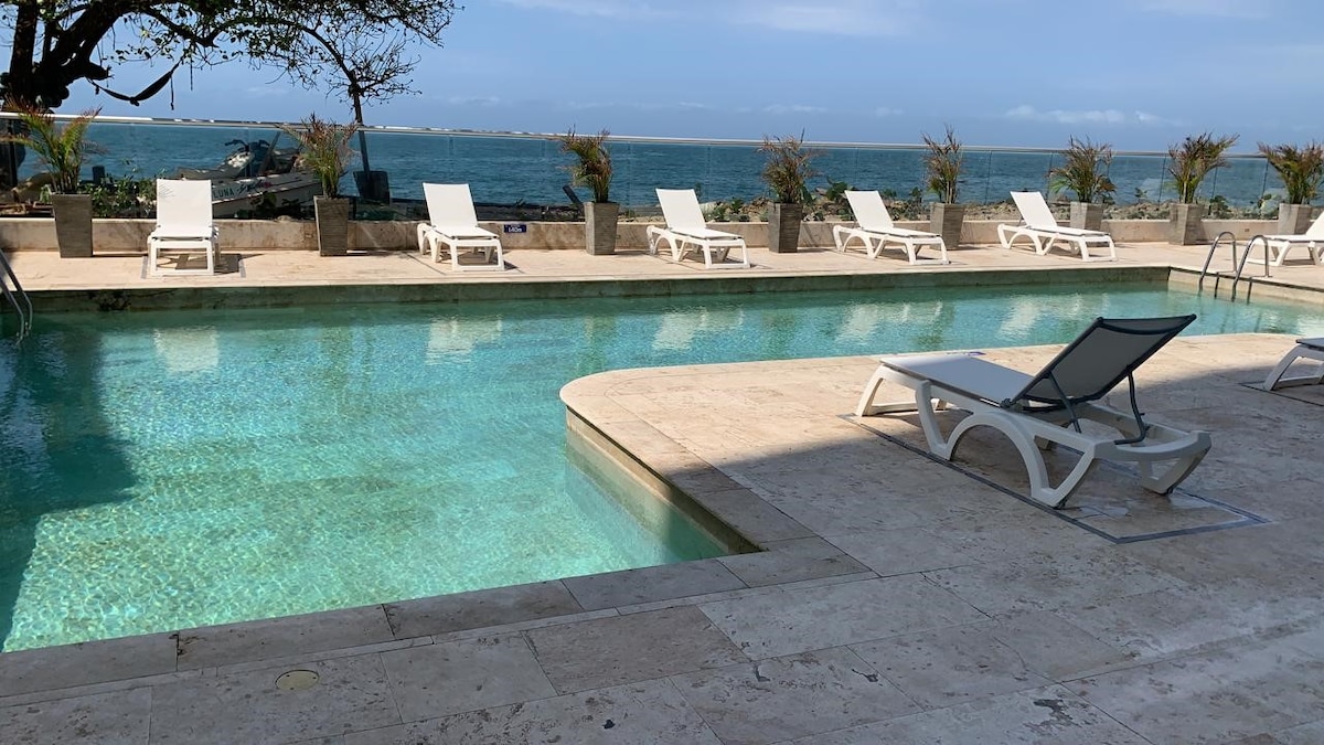 Disfruta un elegante apartamento frente al mar en Bocagrande, con vista directa al Caribe. Cuenta con 2 habitaciones, 2 baños, sala amplia con sofá cama, cocina totalmente equipada, WiFi de alta velocidad y balcón privado con sillón colgante. Aire acondicionado en todas las áreas. Perfecto para familias y grupos que buscan comodidad, ubicación privilegiada y acceso inmediato a la playa. Todo está pensado para una estancia moderna, práctica y relajante.