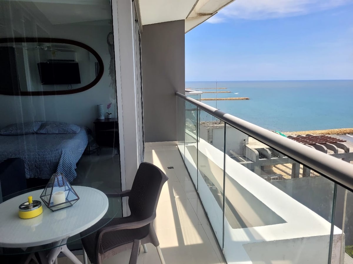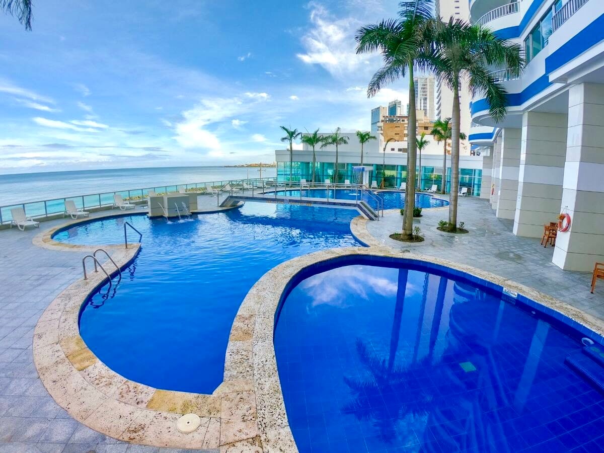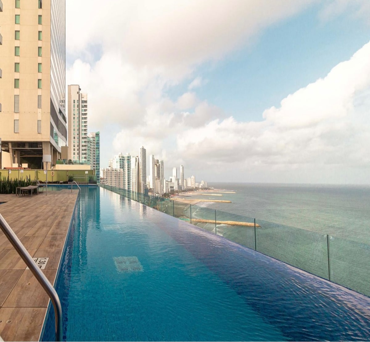 🌊 Penthouse de lujo frente al mar en Cartagena☀️ Despierta con una vista panorámica al océano y al Centro Histórico. La playa está justo al frente del edificio, ideal para bajar y darte un baño cuando quieras. Ubicado en una zona privilegiada, cerca de centros comerciales, restaurantes y a solo 10 minutos del Centro Histórico. 🏢El edificio cuenta con piscina, jacuzzi y gimnasio. Incluye sala cómoda para trabajar con wifi rápido y estable.