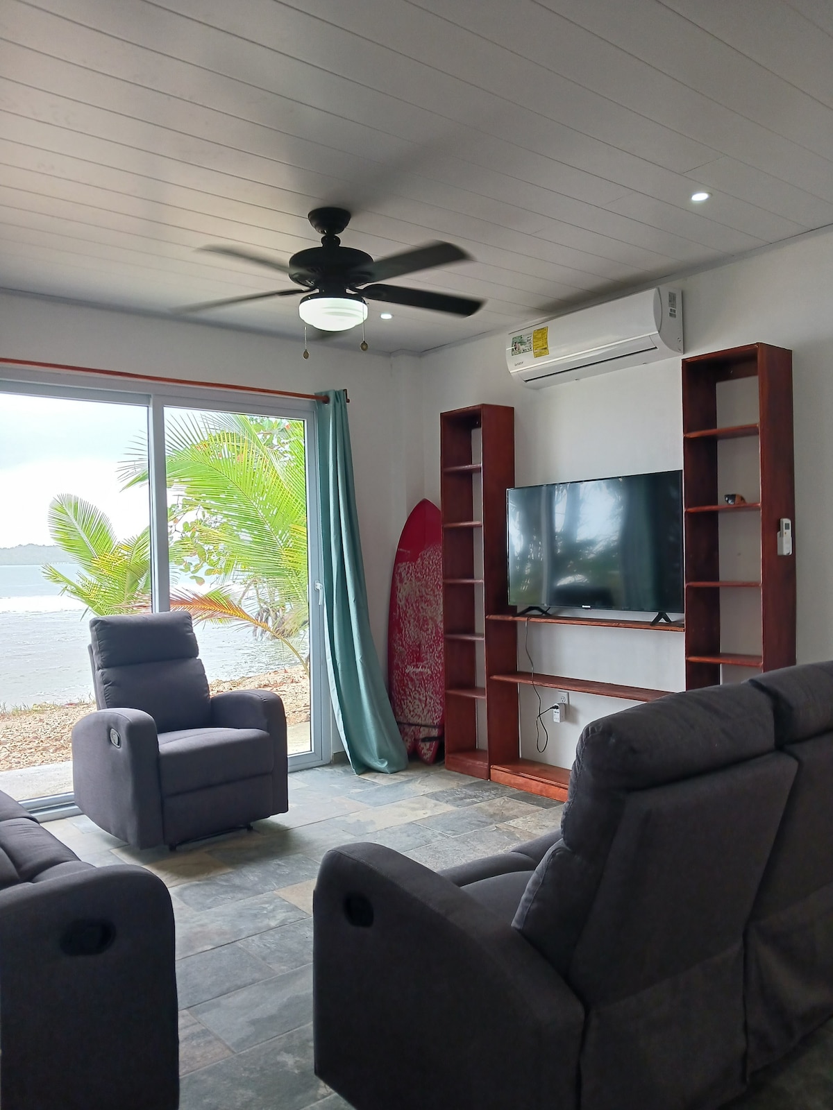 Modern waterfront apartment on the unspoiled island of Bastimento. Panoramic ocean views and breathtaking sunsets. Just a 10-minute walk from Old Bank and a 30-minute walk from the paradisiacal beaches of Wizard and Red Frog via a marked path through the village and rainforest. Peaceful, with natural sea breezes and a fully equipped kitchen, ideal for longer stays. Car-free island, in the heart of a natural park rich in wildlife, a 5-minute boat ride from Bocas Town and its lively scene.
