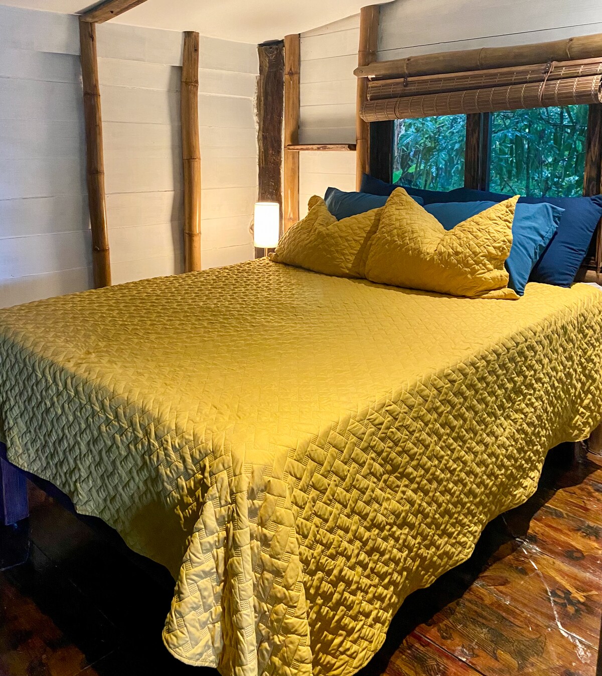This secluded loft-style treehouse sits on stilts above the water, 30 feet from our colorful coral reef. Transparent and airy but bug proof walls let you enjoy the fresh ocean breeze and views while keeping you safe and cozy. When a sloth comes to visit, no need to leave the house to see him! Blend in with the surroundings of mangrove, lagoon and jungle, and enjoy water and reef access from your own deck. Bright and airy, 100% eco-conscious.