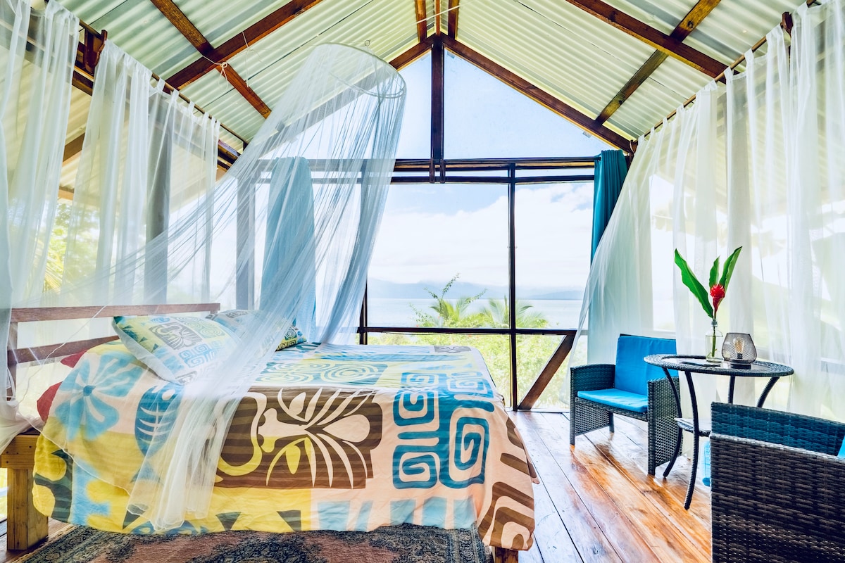 No Service Fees! Relax at our tranquil island getaway located right above the Caribbean. Nestled on the hill overlooking the ocean where you will sleep to the sounds of the jungle and waves. The suite includes a queen-sized bed, a private bath & an outdoor kitchenette. Our location puts you in the middle of your own adventure. Take a short hike through the jungle to wavy beaches or Old Bank. We are a 5-minute boat ride to restaurants and clubs of Bocas Town. *Our entire property is NONSMOKING.*