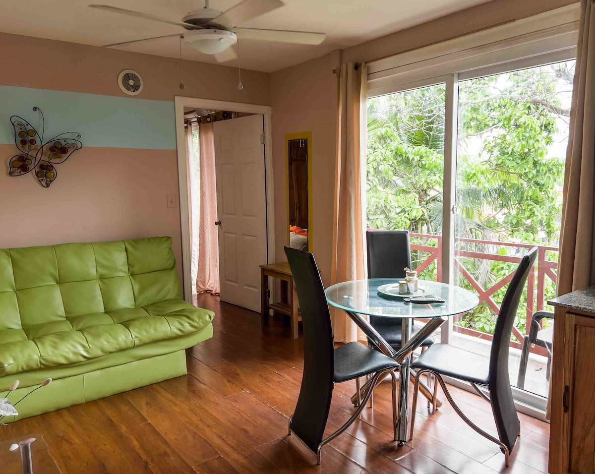 Welcome to Candyland, a vibrant and one-of-a-kind 1-bedroom + sleeper-couch apartment with a full kitchen and private bath—perfect for couples (or friends!) seeking a tranquil yet lively Caribbean escape in Bocas del Toro. Nestled in a peaceful corner of Bocas Town, this charming apartment offers a peaceful retreat just steps away from the airport, vibrant restaurants, bustling nightlife, beaches, and water taxi docks.