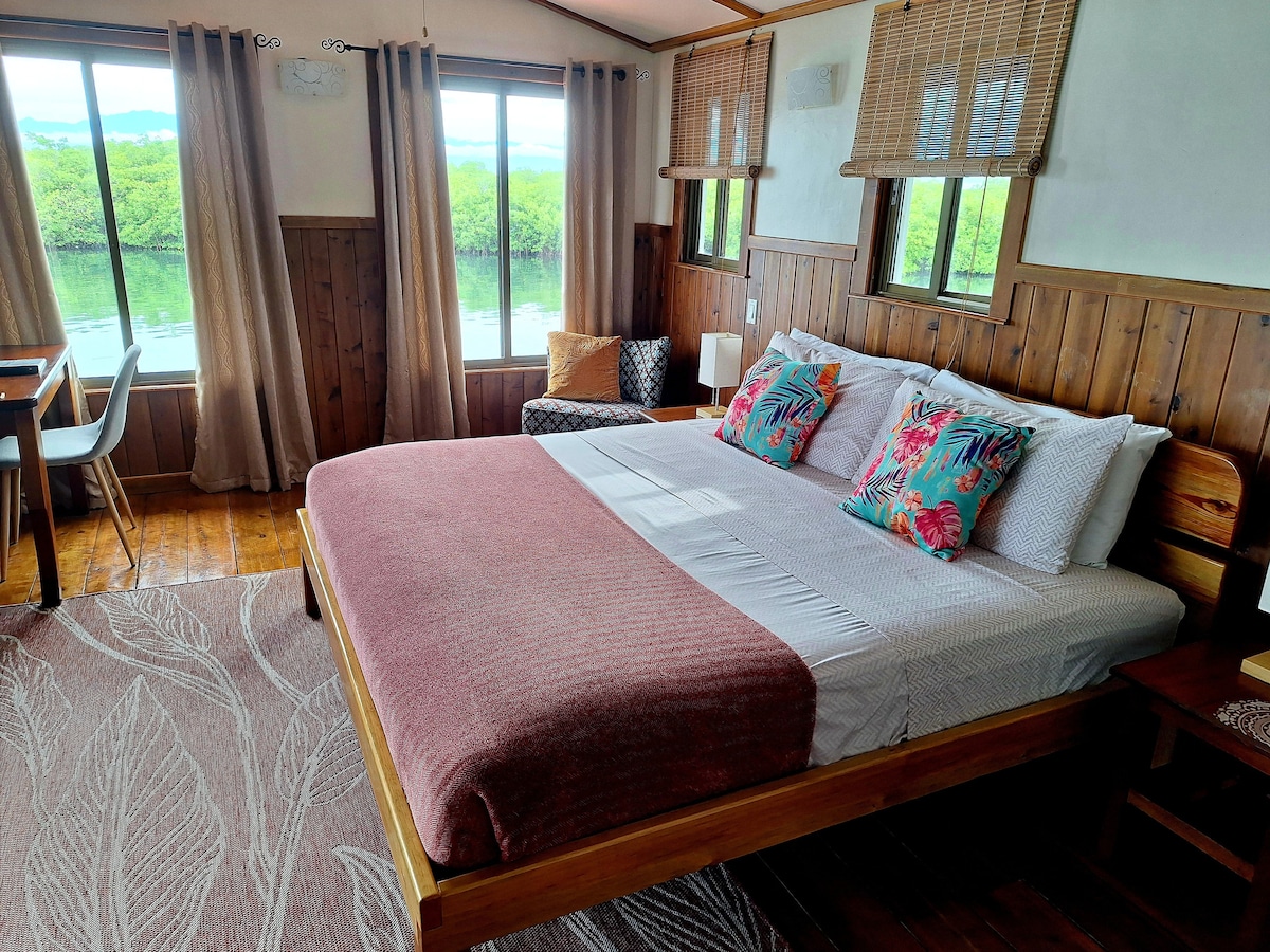 - house built right over the Caribbean sea - bedroom with double sized bed & balcony - private bathroom (hot water shower) - air conditioning included - a la carte breakfast included (between 8 - 9:30 a.m.) - guest kitchen - sunset orientated (yes, we're facing west! :)) - ocean access from our private dock - in-house kayak, bike and snorkel gear rentals - gay-friendly place