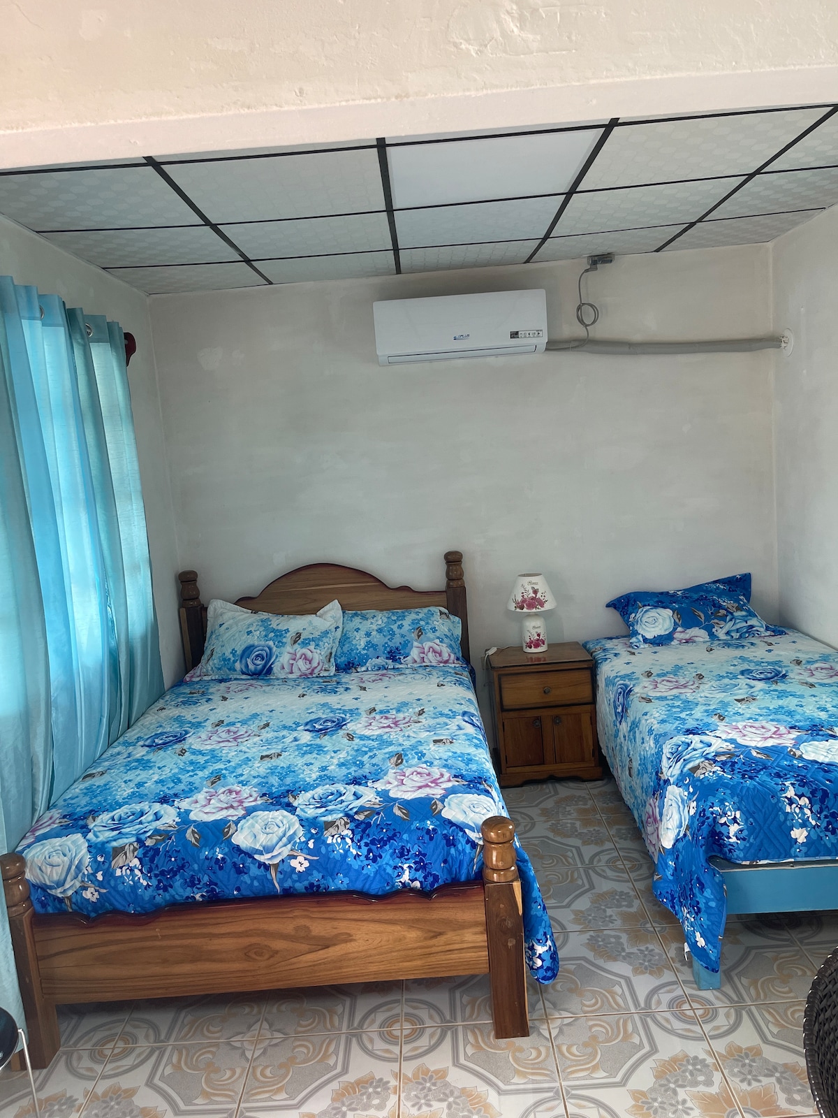 **Discount for monthly rentals** This extremely large air-conditioned King sized bedroom comes with a sitting area and a comfortable Lazy Boy rocker and ceiling fan. It´s giant wooden windows and doors open up completely to the backyard, letting in fresh air and sunshine. The room has 17 foot high ceilings, air-conditioning is also available. There is a television with a fire stick for Internet movies, TV and music available.