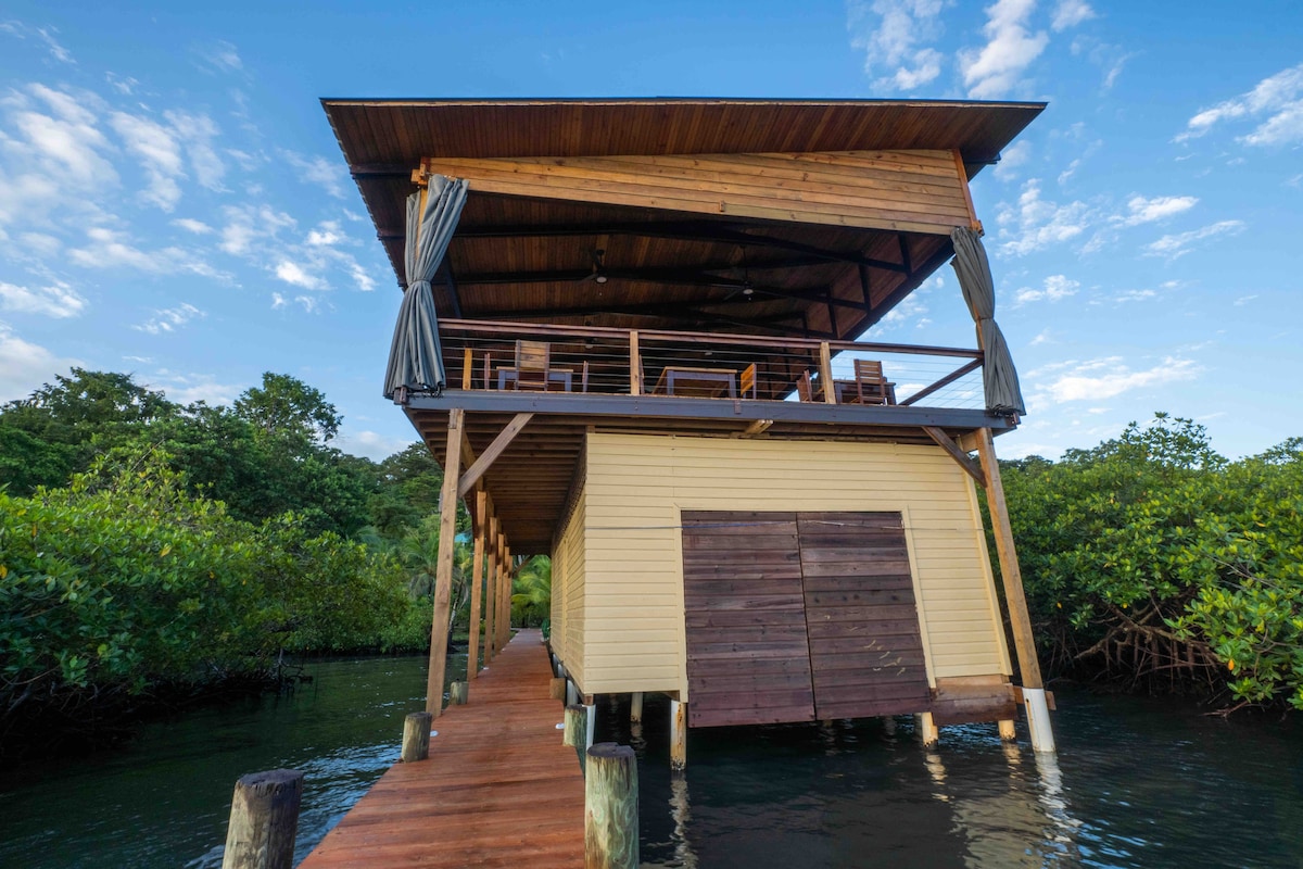 We are proud to offer Casita del Mar, an eco aqua villa built over the Caribbean ocean in Dolphin Bay, on Isla Cristobal in the archipelago of Bocas del Toro, Panama. Situated along a mile long coral reef approx. 25 minutes by boat from Bocas town/airport and 2 hours from the Costa Rica border. The property has direct access to beautiful hiking trails and the villa is stocked with snorkel gear, paddleboards and kayaks for guests to use.
