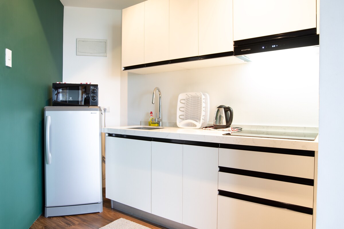 Inspired by an industrial-type black & white interior with a spacious and relaxing look. One bedroom FULLY furnished condo unit with balcony, allowed to cook, heated shower, SMART TV with netflix & primevideo and spacious study/working area. Safe, secured, clean, and situated within the Urban Deca Homes Community and near establishments for your basic needs (SM Hypermarket, Restaurants, Bank, Convenience Store, etc.) Note: Parking reservation is required and subject to availability.
