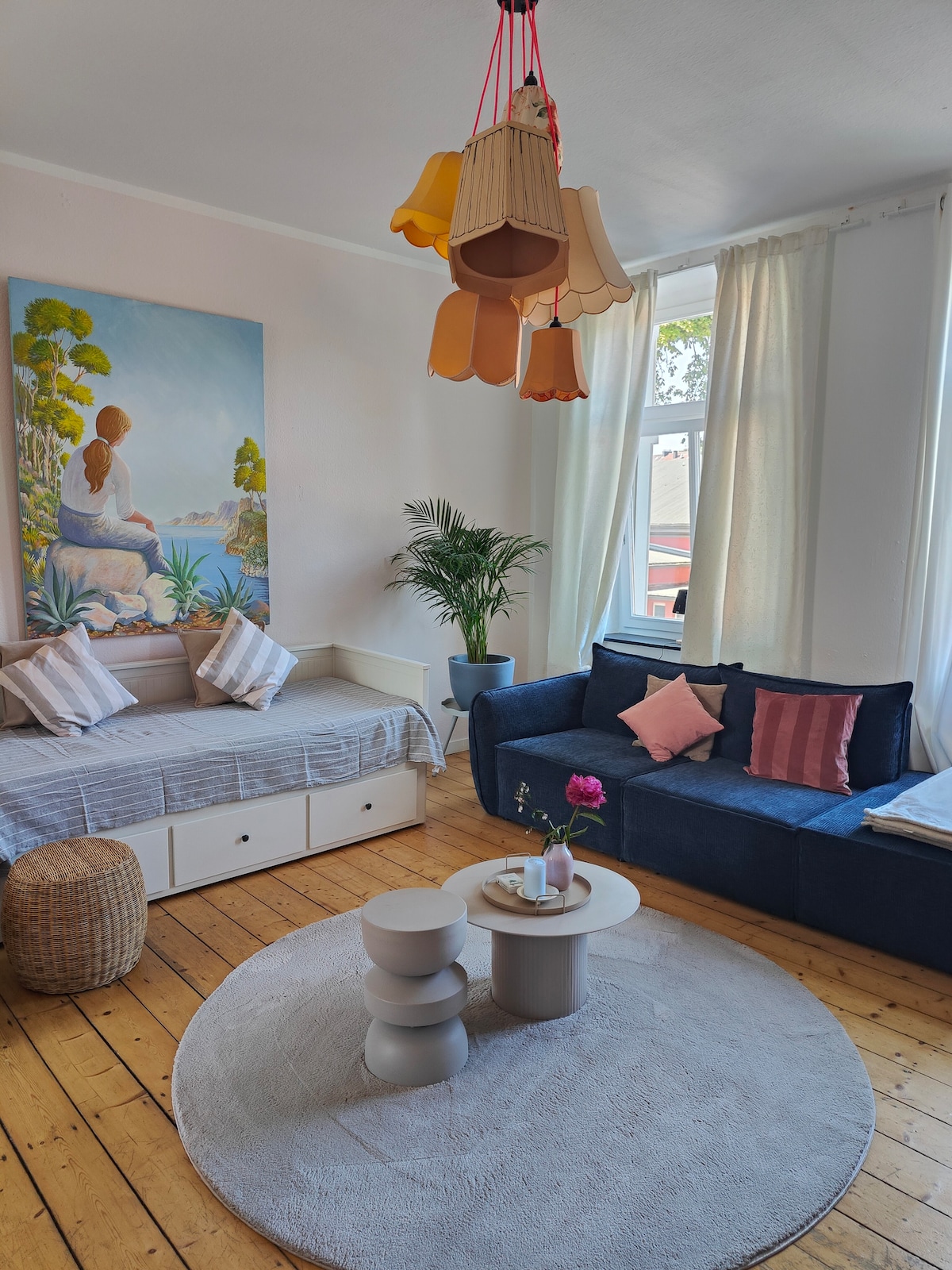 Appartement im kernsanierten Altbau von 1910, 3. Obergeschoss, hohe Decken, großzügiges Bad, moderne Einrichtung und Parkettfußboden. Das Appartement liegt im quirligen Stadtteil Flingern. Im Umfeld befinden sich eine große Anzahl an Cafés, Restaurants und kleinen Läden. Die nächste Straßenbahnhaltestelle ist ca. 150 m entfernt. Wir gehören zum Stadtzentrum und somit gilt bei uns die Anwohnerparkregelung. Bist du mit dem Auto unterwegs, zeigen wir dir gern wie und wo du parken kannst.