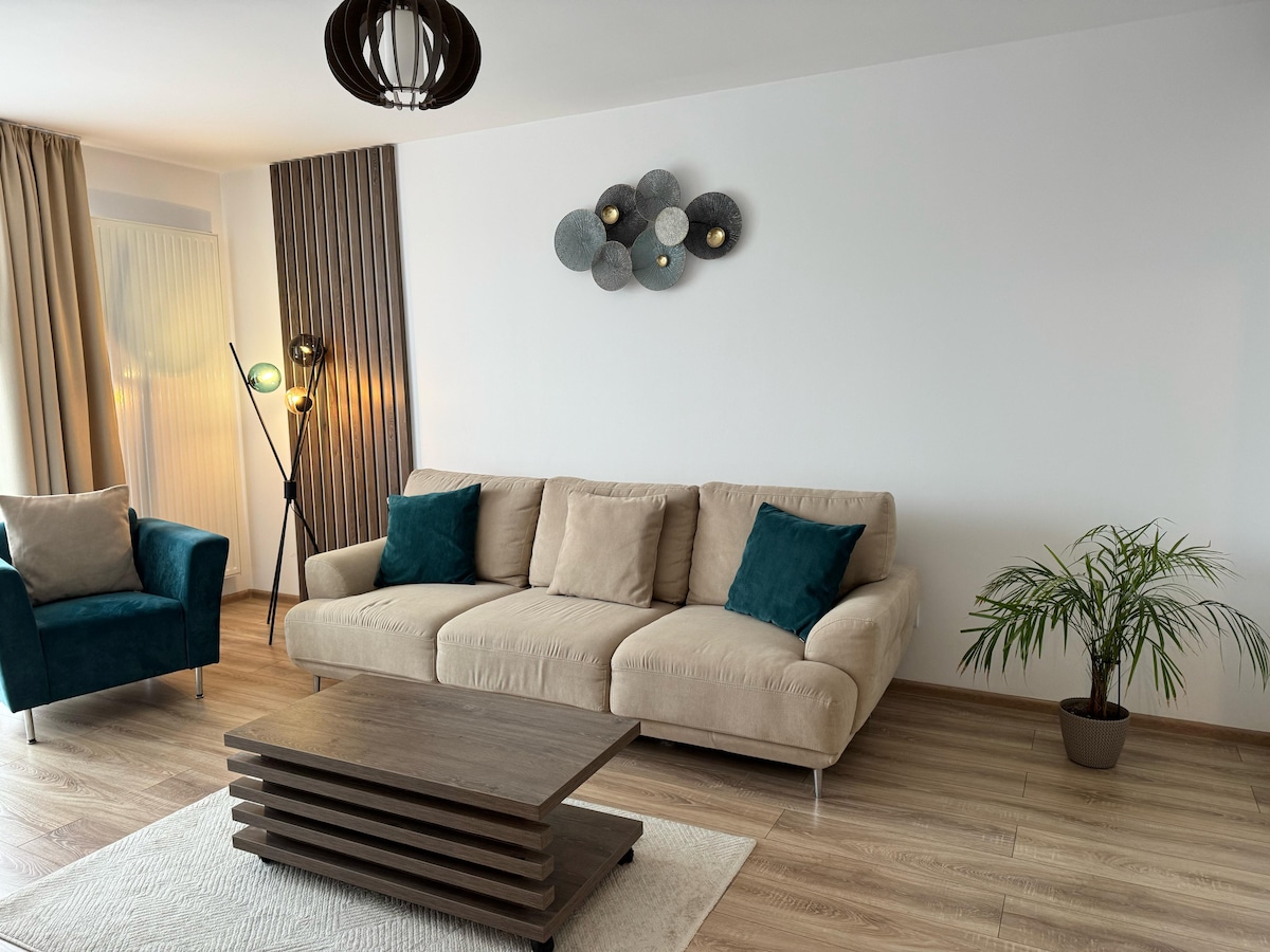 Located in a new neighborhood, near the best shopping center in Brasov, Coresi Shopping Resort. Here you can enjoy a large variety of restaurants, shops, a modern spa and a fitness center. The beautiful Old Town of Brasov is only a 10 minutes' drive. The ski slopes of Poiana Brasov are 25 minutes' drive away. Free parking place is available in front of the building. Bus station to city center is only 3 minutes walking distance.