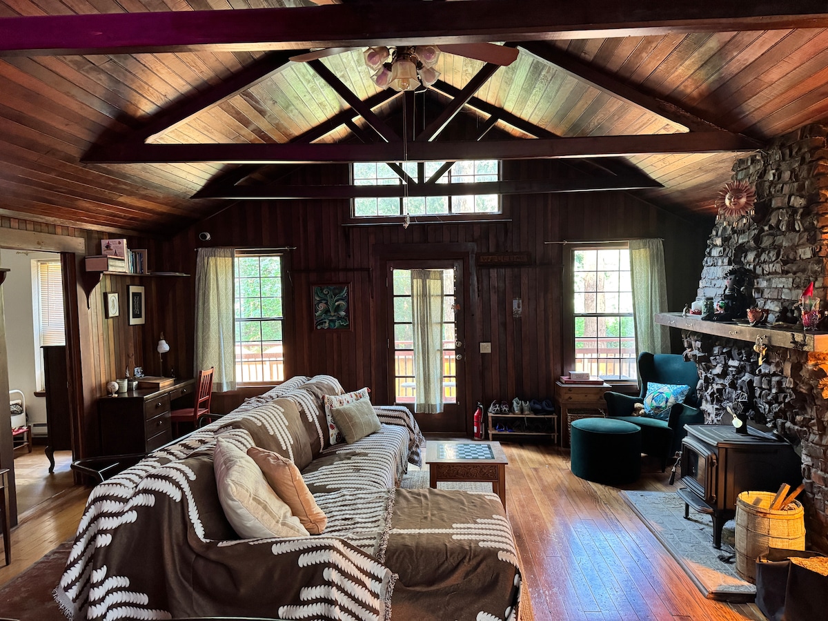 Rustic cabin w/ deck & fireplace