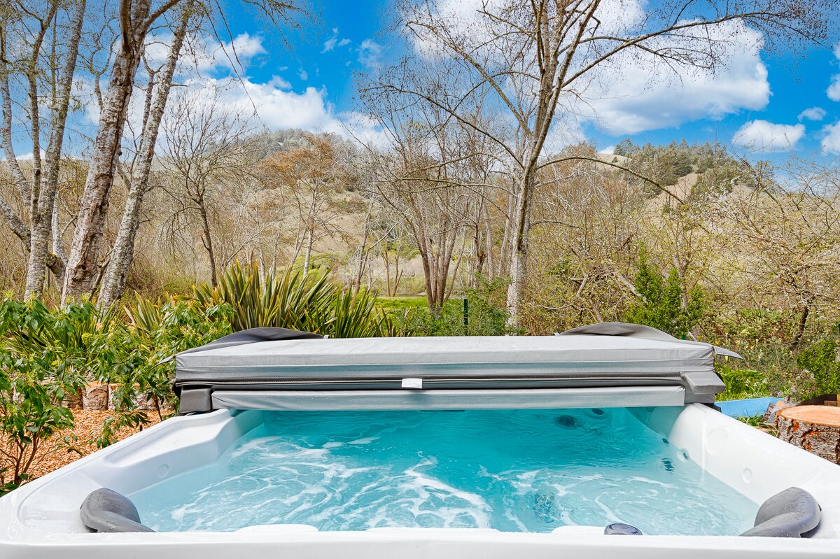 红杉舒适小屋、热水浴缸、步行即可抵达河边