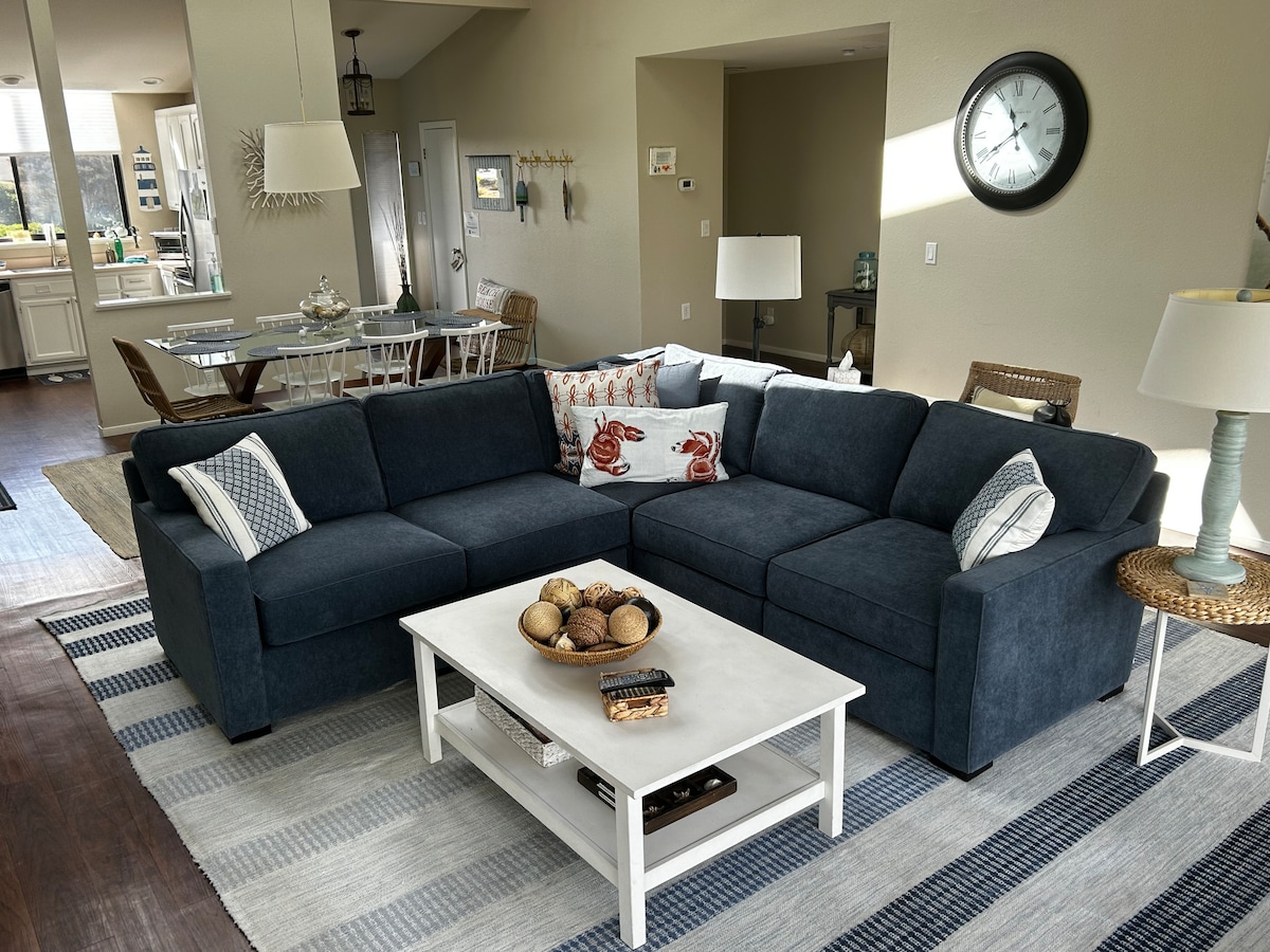Come relax at 'Harbour Sounds' our beautifully updated 3 Bedroom, 2.5 Bath home located in the South Harbour on the 14th fairway of the Links at Bodega Harbour Golf course . Perfect family house that is open, airy & spacious. Accommodates 6 guests and we welcome your furry friend! ( fees apply). Includes Everything you will need to enjoy all that Bodega Bay has to offer. Easy walking access to local beaches, hiking trails, golf course and the neighborhood Bluewater bistro restaurant.