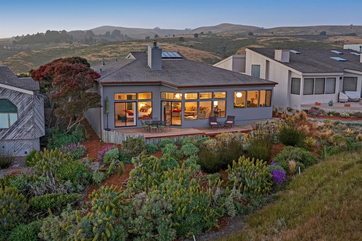 Our custom-designed beachhouse is perched on a bluff overlooking the Pacific Ocean and offers spectacular panoramic views from every room. It's a perfect retreat from everyday life. Relax in one of two living areas or on one of the decks, and toast the sunset with local wines. Walk along sandy Dillon Beach, hike to the estero, fish from the many coves, kayak, surf, paddleboard or kiteboard at the beach, eat oysters from the pristine Tomales Bay, or curl up with a book on the couch.