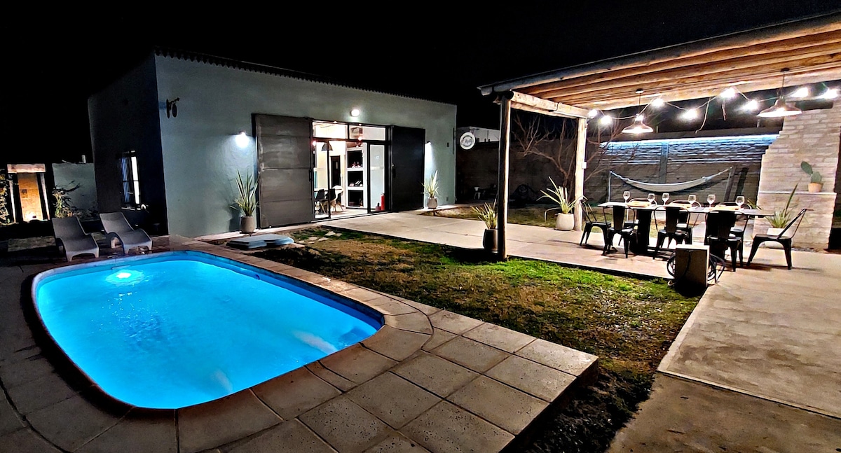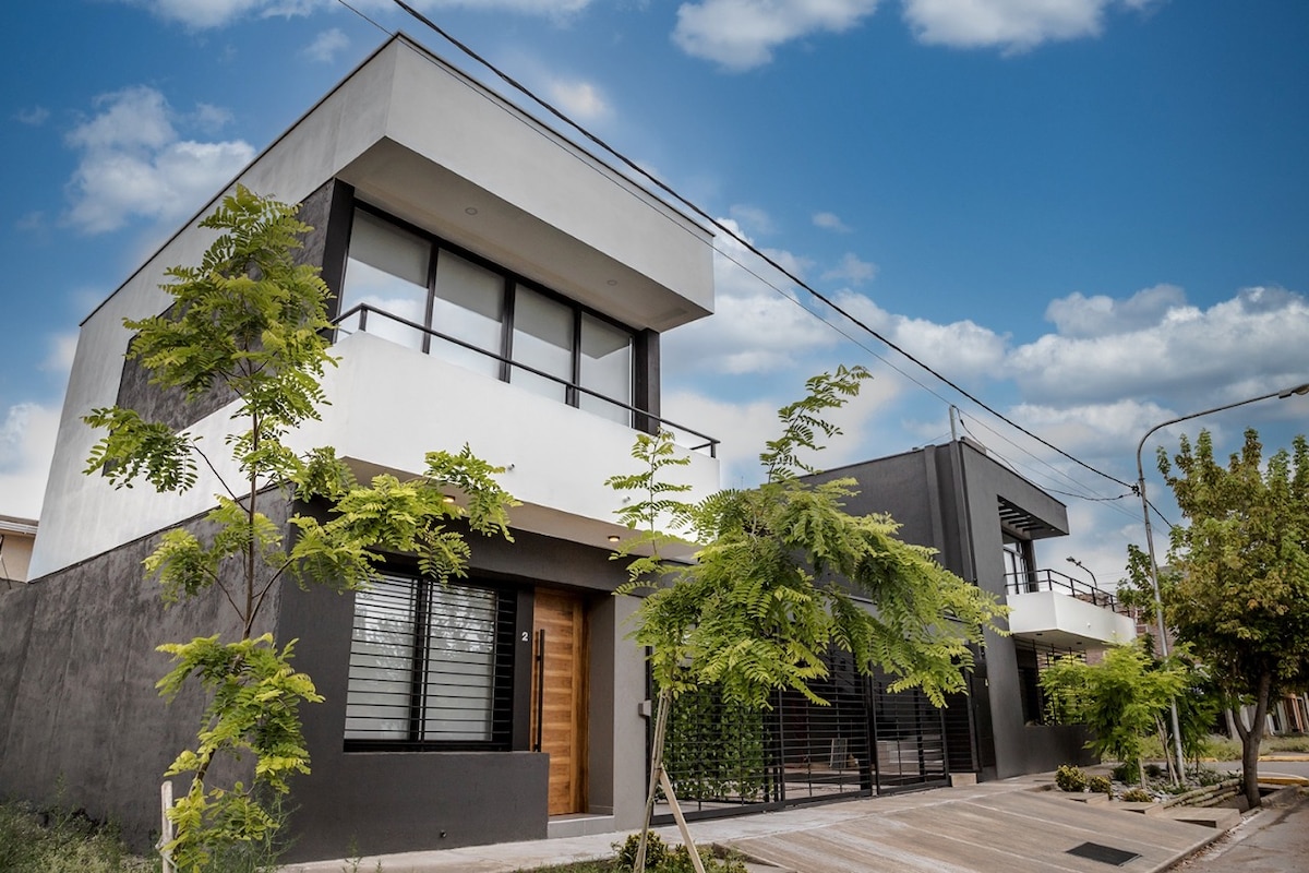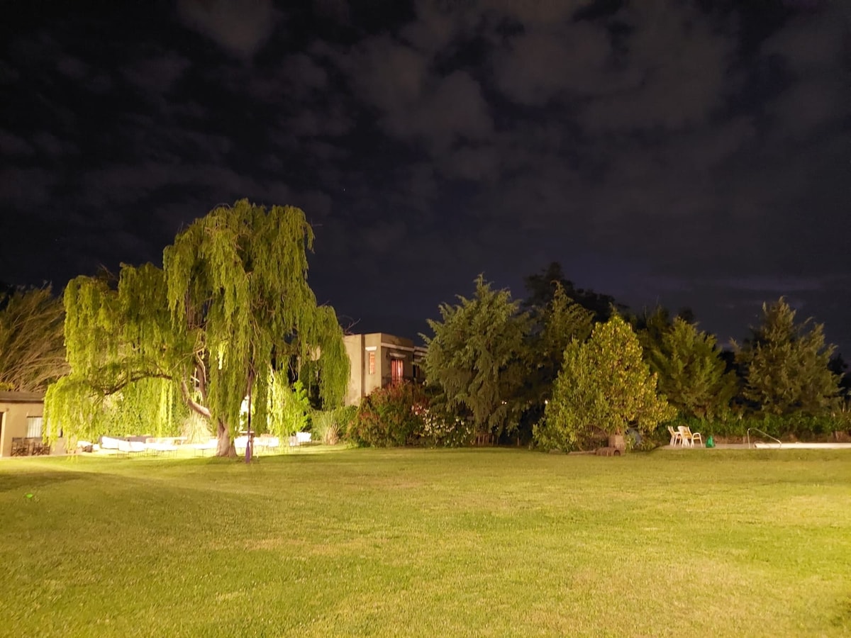 A unique place. A space to fully experience. 13 km from the city of Mendoza and within the "Wine Roads" circuit. With a private exit, exclusive covered garage, excellent Wi-Fi, a queen-size bed, en suite bathroom, TV, refrigerator, electric oven, microwave, electric kettle, bed and bath linens, and pool towels. We also include a split-screen TV and a safe. We continue to add comfort and tranquility to make your stay in our space unforgettable.
