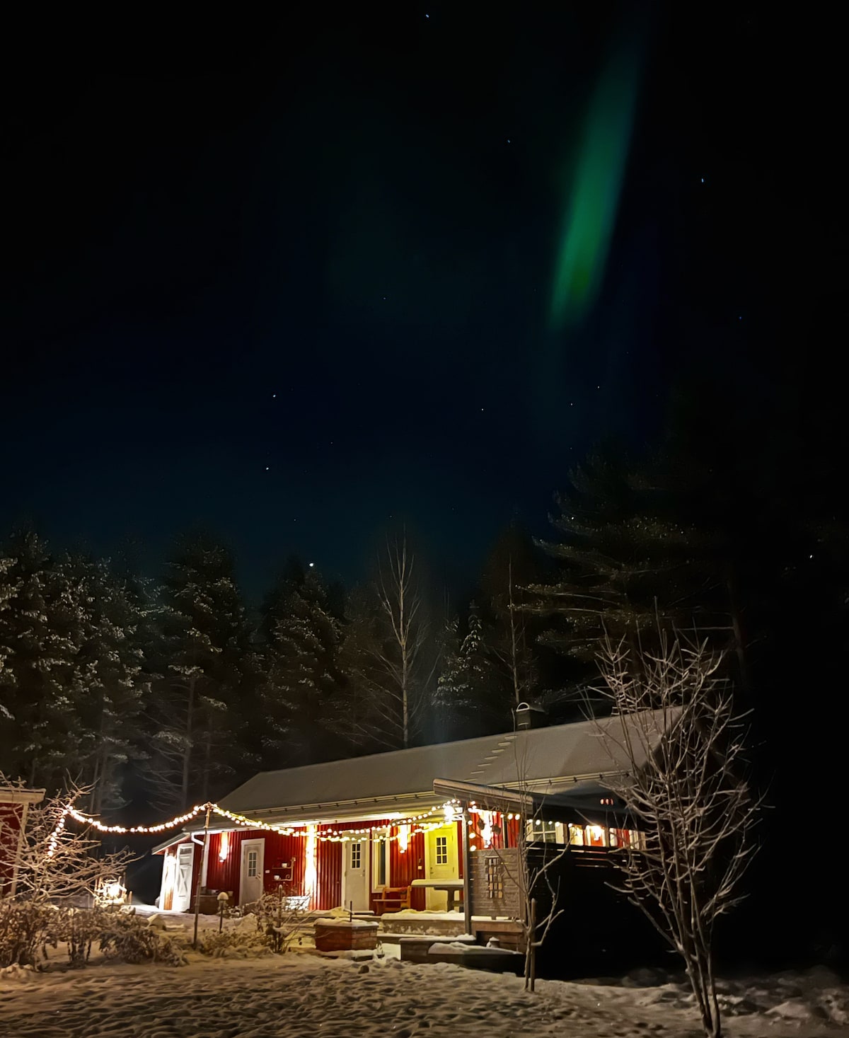 Vackert hus och boende beläget på en udde i Råneälven. Nära till vatten och skog. Här finns fullt utrustat, modernt kök och wc med tvättmaskin för bekvämt boende i lugna och vackra Norrbotten. The northern light is common at the house. You can even see it from the bedroom, if the weather is right. Ett sovrum med dubbelsäng. Obs ingen barnsäng finns. I vardagsrummet finns två sängar som går att ta isär. Även två soffor som man kan bädda i om man är ett stort sällskap.