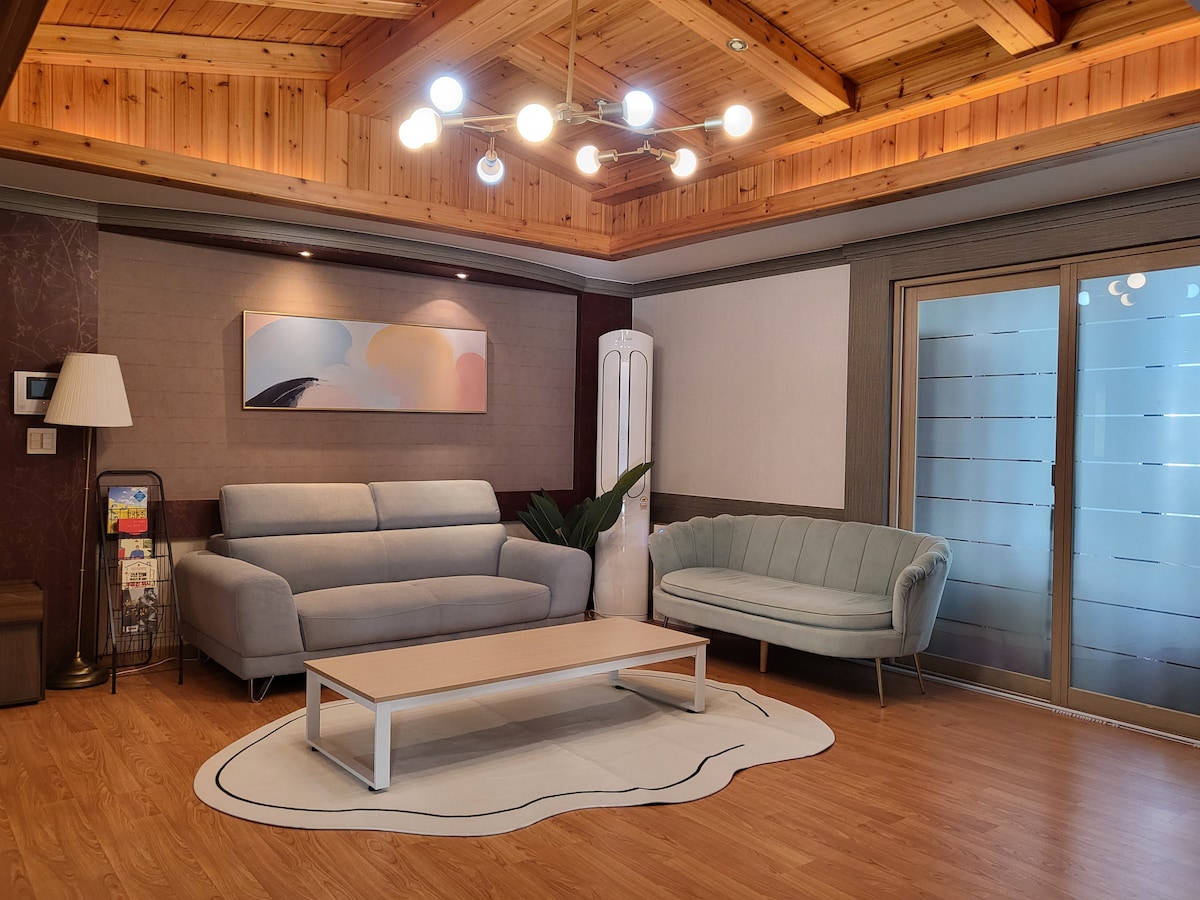 新特价ㆍ35坪/ 12月赠送礼物/ 2分钟到英日台海滩/最多12人/净水器/太空步/竹岛市场