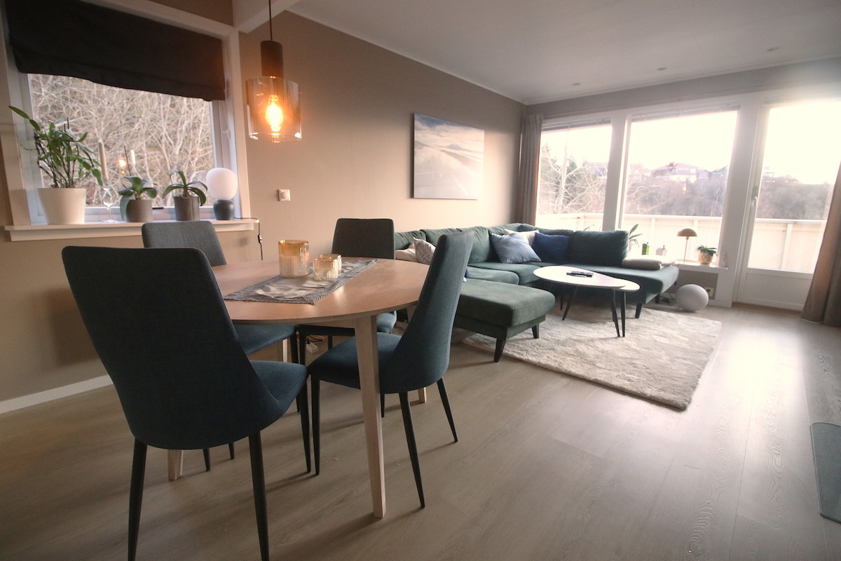 Våkne til rolige omgivelser og utsikt mot Landegode. Nyt morgenkaffen på altanen og midnattssolen om kvelden. Leiligheten har to sofa-avdelinger, stort spisebord og et fullt utstyrt kjøkken med flere servisesett. For hobbyfiskere finnes 350L frysekapasitet. Gangavstand til restauranter, bakeri, kjøpesenter, kirke og museum. Perfekt for familier som ønsker god plass, komfort og nærhet til alt byen har å by på.