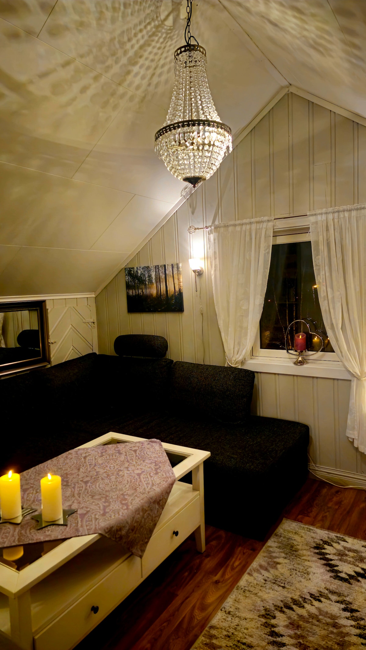 This appartement is a nice place to stay when you are visiting Bodø region. The appartment is suitable up to 3 persons to stay. There is one bedroom with a queen size bed, and there is also a sofa bed in the living room. It is a great panorama view from the living room. If you take a walk on the property you can also see a lot of nature and at the same time you can see the downtown area of Bodø. If the sky is clear it could be a good possibility to see the aurora borealis in the night from her.