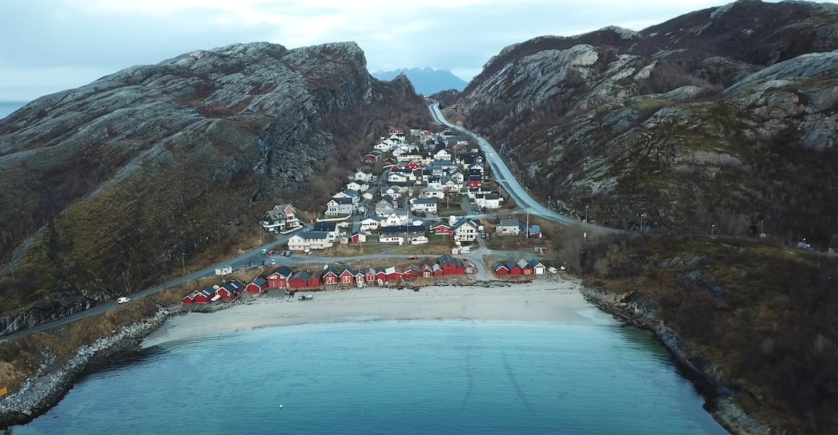 Velkommen til vår koselige hytte, kun 50 meter fra havet! Her kan du nyte den fantastiske utsikten til både havet og fjellene, og oppleve den magiske midnattssolen om sommeren 🌞 eller det imponerende nordlyset om vinteren 🌌. Hytta har to etasjer og er perfekt for en avslappende ferie. Den romslige hagen gir deg muligheten til å nyte friluftslivet, med utsikt til både sjøen og fjellene, mens du slapper av på terrassen eller i hagen.