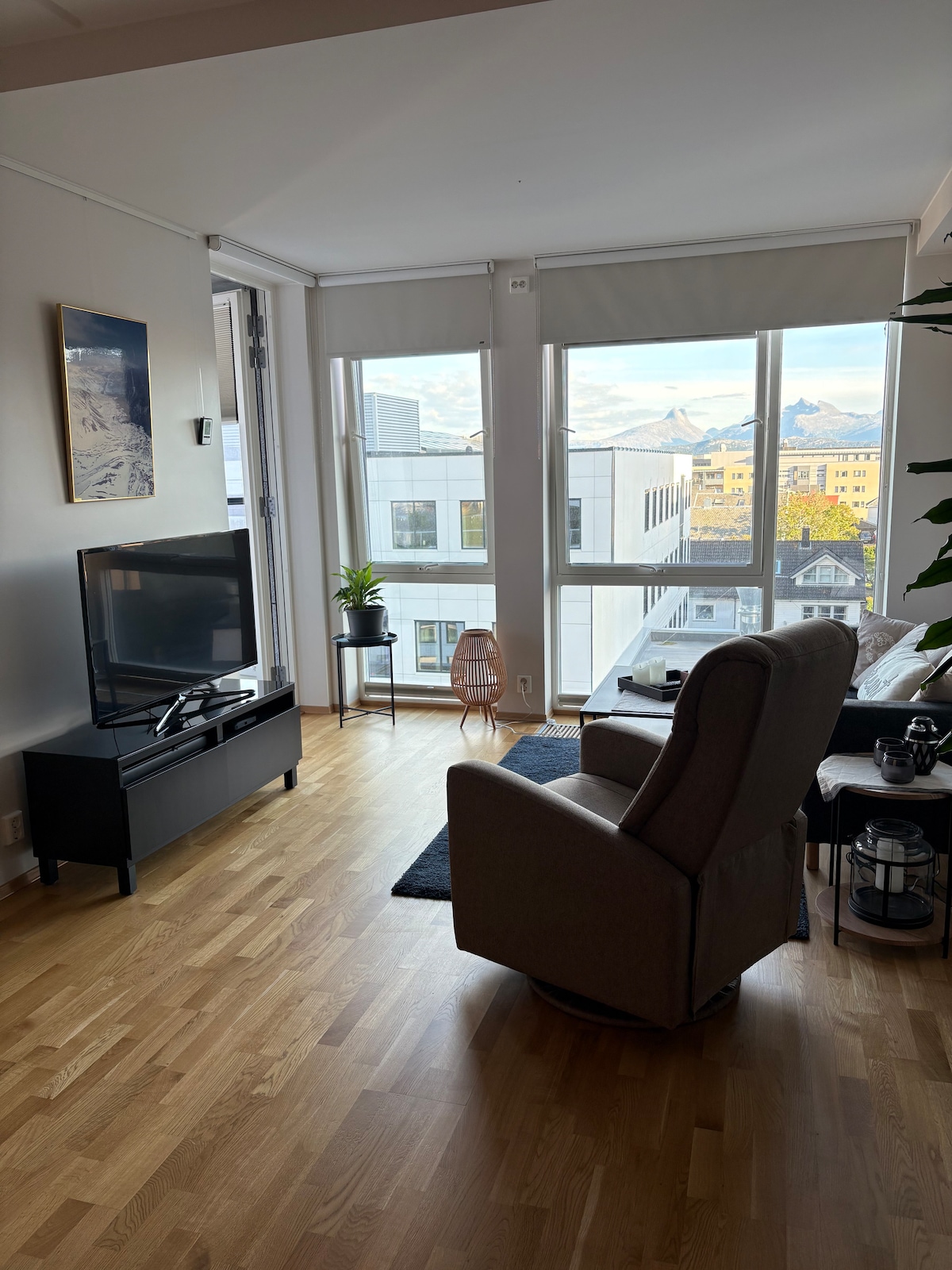 Velkommen til vår splitter nye leilighet midt i Bodø sentrum! 🏡 Her får du deilige senger med kvalitetsdyner og hvitt hotell-sengetøy. De fleste gjestene våre kommenterer at de sover veldig godt! ✨ Vi har tilpasset leiligheten til utleie og derfor er den lett å holde ryddig, har store skap og smart møblering. Selv om vi er midt i Bodø sentrum kan vi se nordlyset fra vinduene fordi det ikke er sterke gatelys rett utenfor huset.