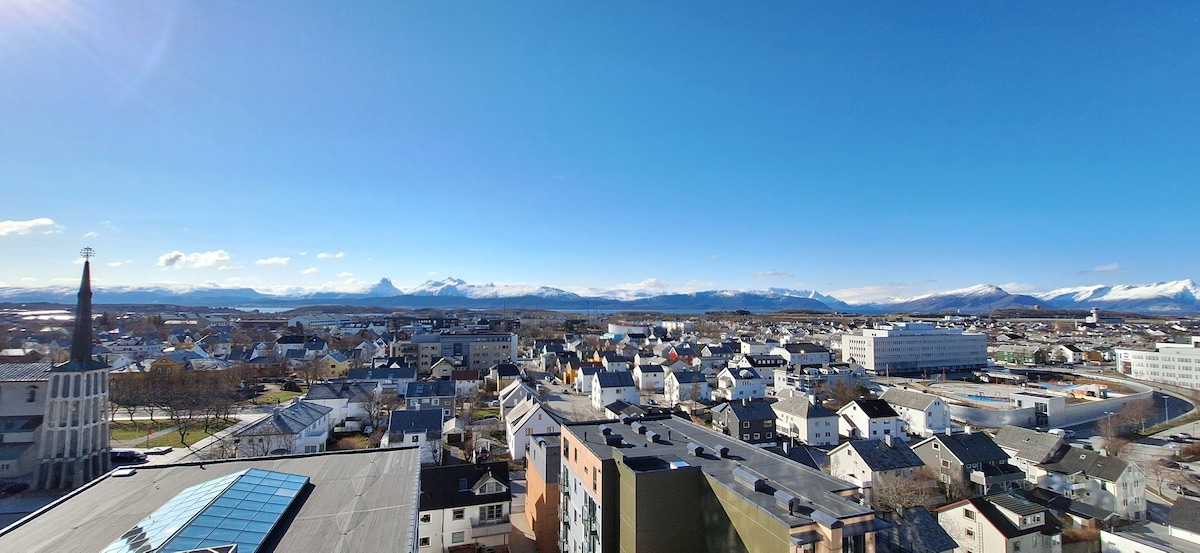 Velkommen til utsiktsleilighet i sentrum av Bodø. Leiligheten ligger nært flere restauranter, utesteder, kjøpesenter og bussholdeplass. Aspmyra fotballstadium ligger også i umiddelbar nærhet. Dersom du vil bo sentralt, nyte en god utsikt eller bare sove en natt uten mye støy, så er dette plassen for deg. Leiligheten er åpen og romslig, møblert med bare det du trenger. Stedet har 1 seng 140x200cm, og en luftmadrass med overmadrass 140x200cm som kan brukes, dersom det er nødvendig.