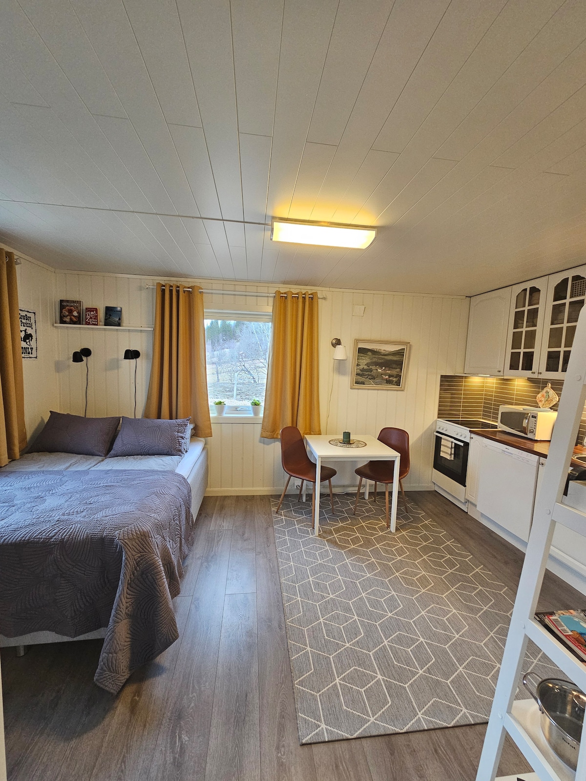 Minihus med alle fasiliteter. Naturen venter rett utenfor. 5 nasjonalparker mindre enn 2 timer fra hytta. Fiskemuligheter rett utenfor døra, ved fjorden eller i Beiarelva. Fjord og fjell i en avstand på 10 minutter. Kjøkken med induksjonstopp, ovn og oppvaskmaskin. Tv og AppleTV. Varme i gulv på alle rom. Overnattingsmuligheter for fire personer på dobbeltseng på hems og sovesofa. Plass til fire, passer nok best til to. sjekk ut: kulturveien no Visitbodo no