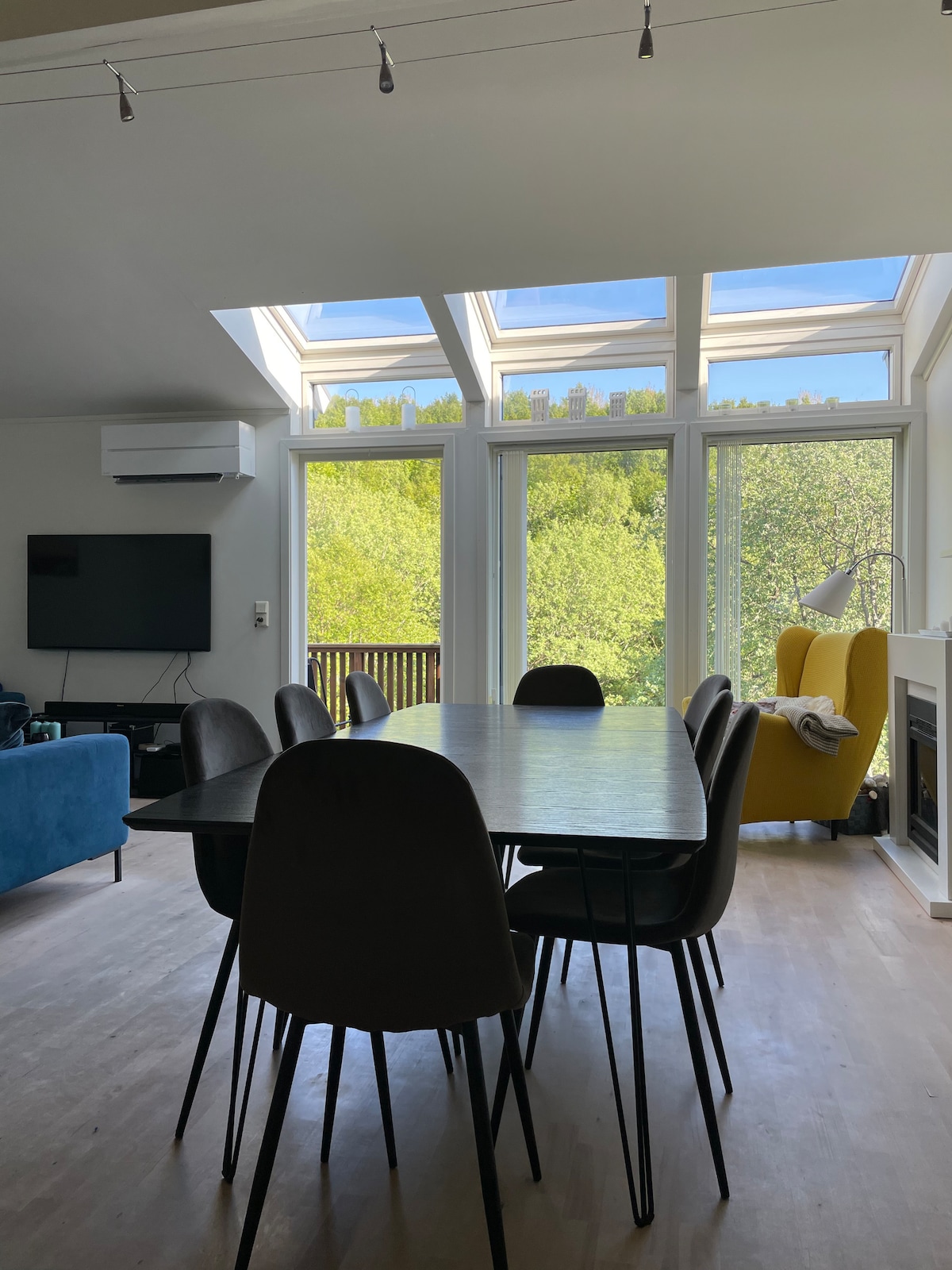 This is a newly restored barn completed in the summer of 2023. We have taken care of as much as possible of the old, and combined it with the new. This makes the barn a completely unique place, with a soul. 1st floor consists of hallway, bathroom with toilet and shower, hobby room, two bedrooms. The 2nd floor consists of an open solution, where part is the "main hall" with a fireplace, a well equipped kitchen, and a cosy sofa section. All rooms are well equipped.