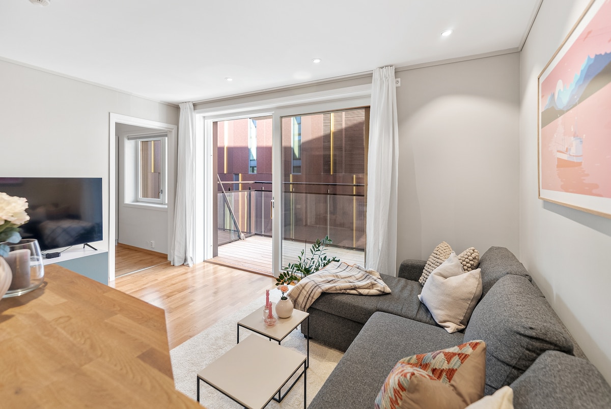 Leiligheten ligger sentralt med en flott beliggenhet ved havet. Området er trygt og rolig. Ca 10 min gange til flyplassen. Det tar ca 12 min å gå til Bodø sentrum som er en fin tur langs strandpromenaden. Byen byr på mange flotte restauranter, kafeer, kulturhus og butikker. Kort vei til hurtigbåt, tog og Aspmyra fotballst. Leiligheten er moderne innredet og velutstyrt. Innglasset balkong hvor glassene enkelt kan åpnes. Her kan man kan nyte stillheten og innseilingen til Bodø. Gode solforhold.