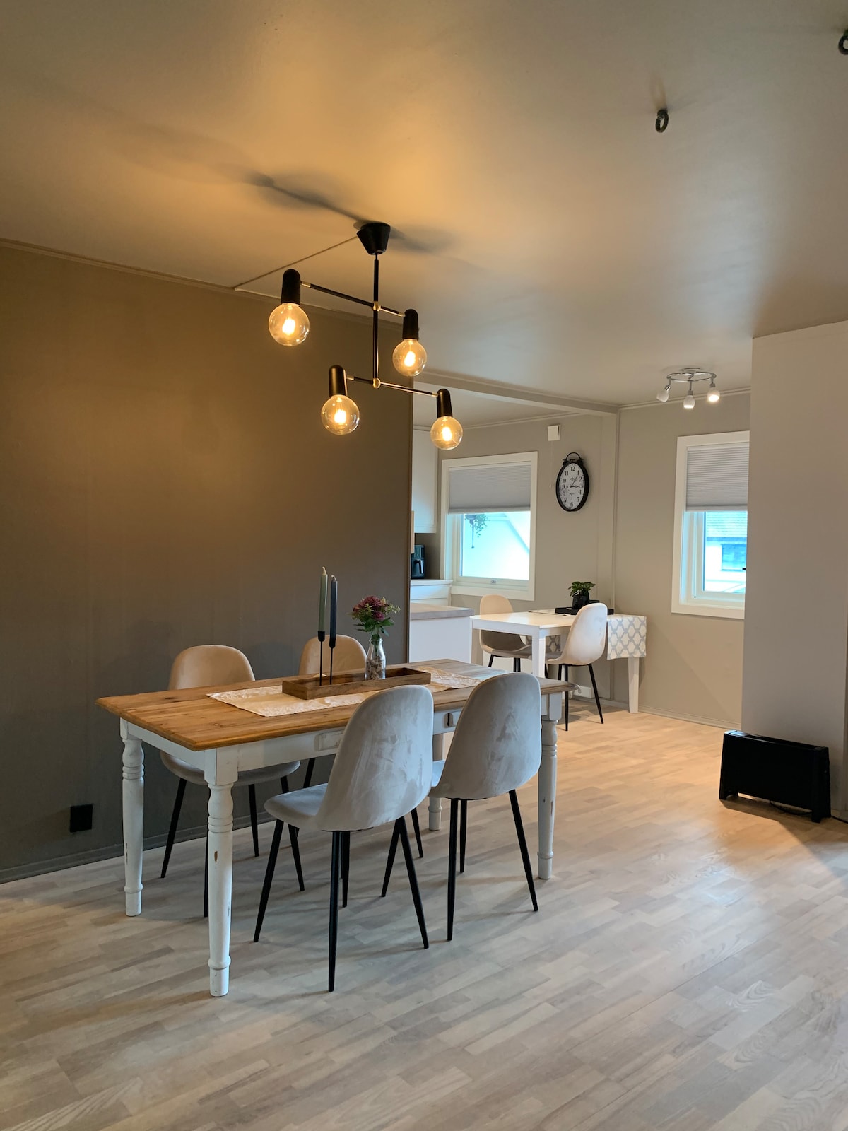Lys og trivelig leilighet innredet for lengre eller kortere opphold. Leiligheten ligger i gangavstand til butikker og Bodø sentrum. Det er bare 12 minutter gange til Jernbane og Hurtigrutekai. Det er gratis parkering tilhørende leiligheten. Automatisk ut & innsjekk. Roger og Sunniva ønsker dere velkommen til ett hyggelig opphold.