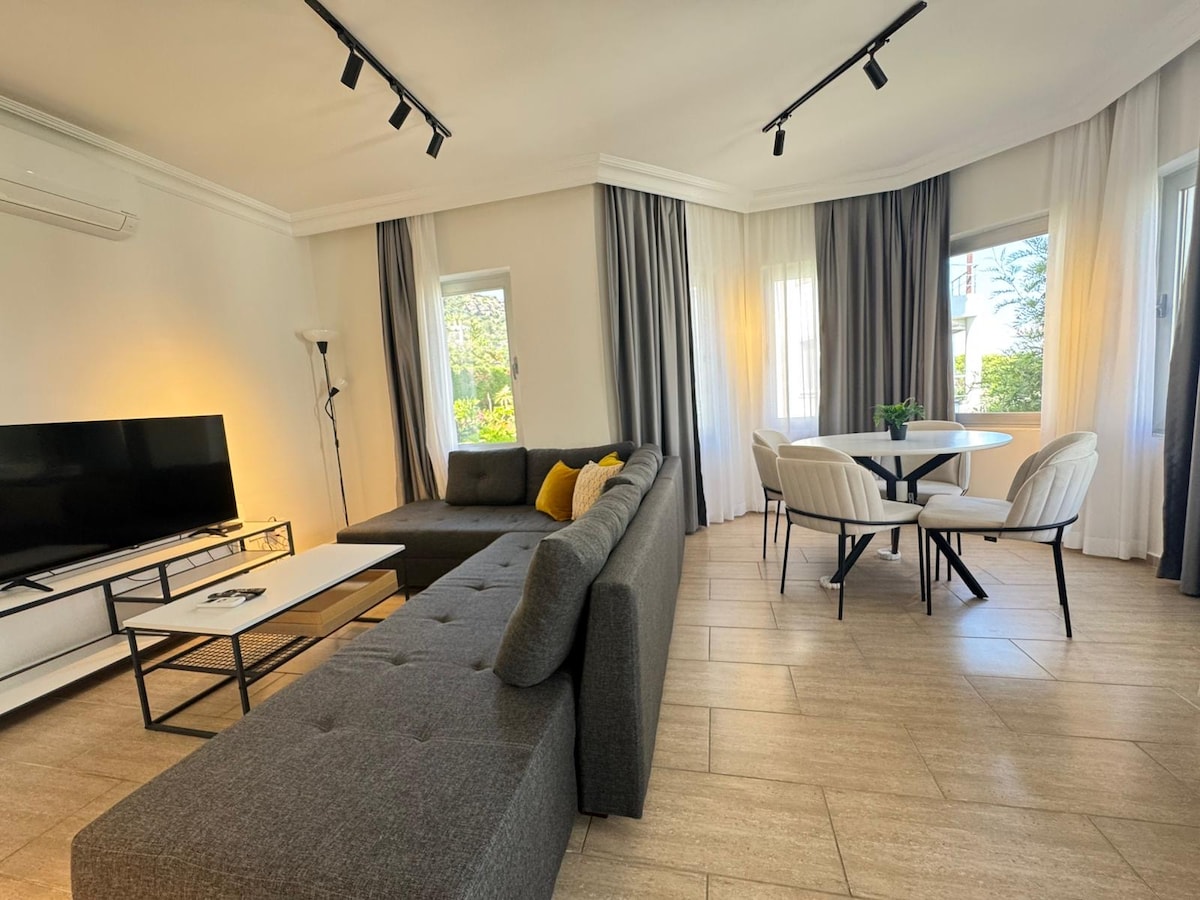 Welcome to your peaceful Bodrum escape! Our renovated 2-bedroom apartment is just a 5-minute stroll to Türkbükü Beach and iconic spots like Lifeco, Miam, Divan Hotel, Blue Hotel, and other pristine beaches. 🏖 Prime Location Enjoy Türkbükü’s best restaurants, cafés, markets, and nightlife all within walking distance. 🌊 Sea View Bliss Wake up to stunning Aegean views and soak in Bodrum’s beauty from your private space.